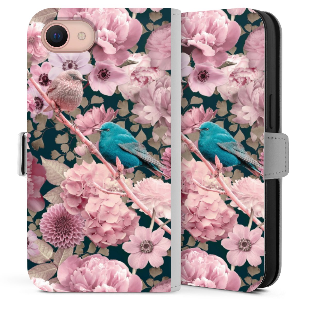Spatzen im rosa Blumenmuster