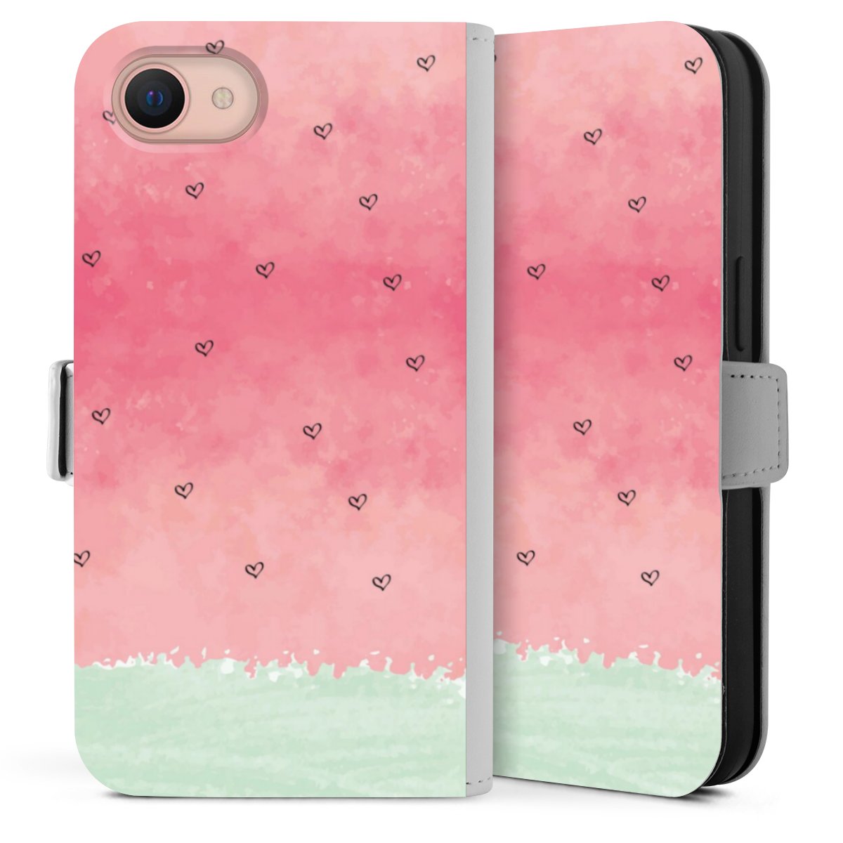 Bei dieser Handyhülle nutzen wir das solide Direktdruck-Verfahren. Der Druckbereich umfasst die Vorder- und Rückseite, die Innenseiten bleiben unbedruckt. Die Handyhülle kann sowohl unbedruckt, als auch vollflächig oder partiell bedruckt bestellt werden. Beachte hierbei, dass der Druck wie in der Ansicht dargestellt auf dem Rücken unterbrochen ist, damit Dein Druckbild durch das Klappen der Tasche nicht brüchig wird. Der Vorteil bei diesem Produkt: aufgrund der seitlich angebrachten Lasche wird kein Teil des Druckbildes verdeckt.