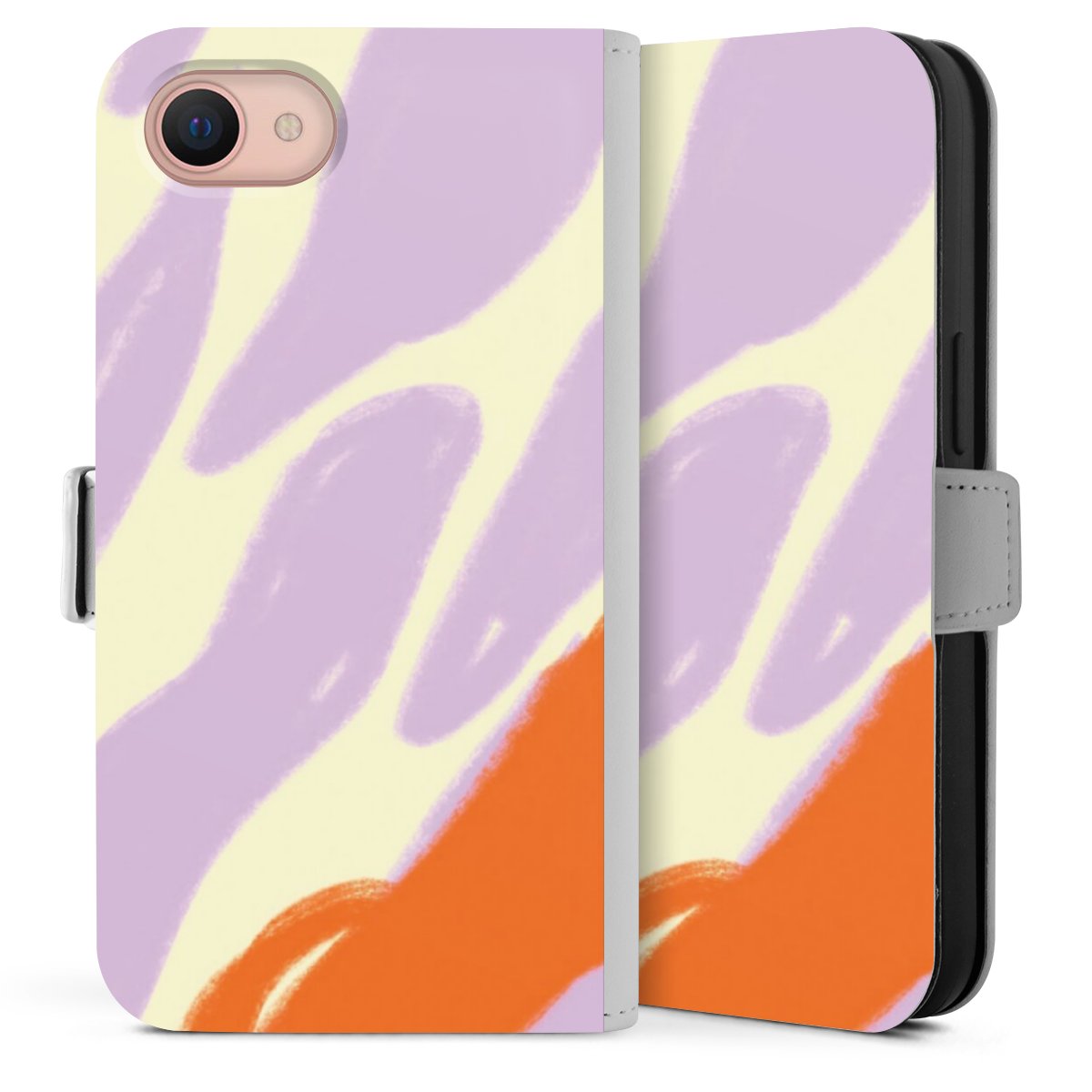 Bei dieser Handyhülle nutzen wir das solide Direktdruck-Verfahren. Der Druckbereich umfasst die Vorder- und Rückseite, die Innenseiten bleiben unbedruckt. Die Handyhülle kann sowohl unbedruckt, als auch vollflächig oder partiell bedruckt bestellt werden. Beachte hierbei, dass der Druck wie in der Ansicht dargestellt auf dem Rücken unterbrochen ist, damit Dein Druckbild durch das Klappen der Tasche nicht brüchig wird. Der Vorteil bei diesem Produkt: aufgrund der seitlich angebrachten Lasche wird kein Teil des Druckbildes verdeckt.