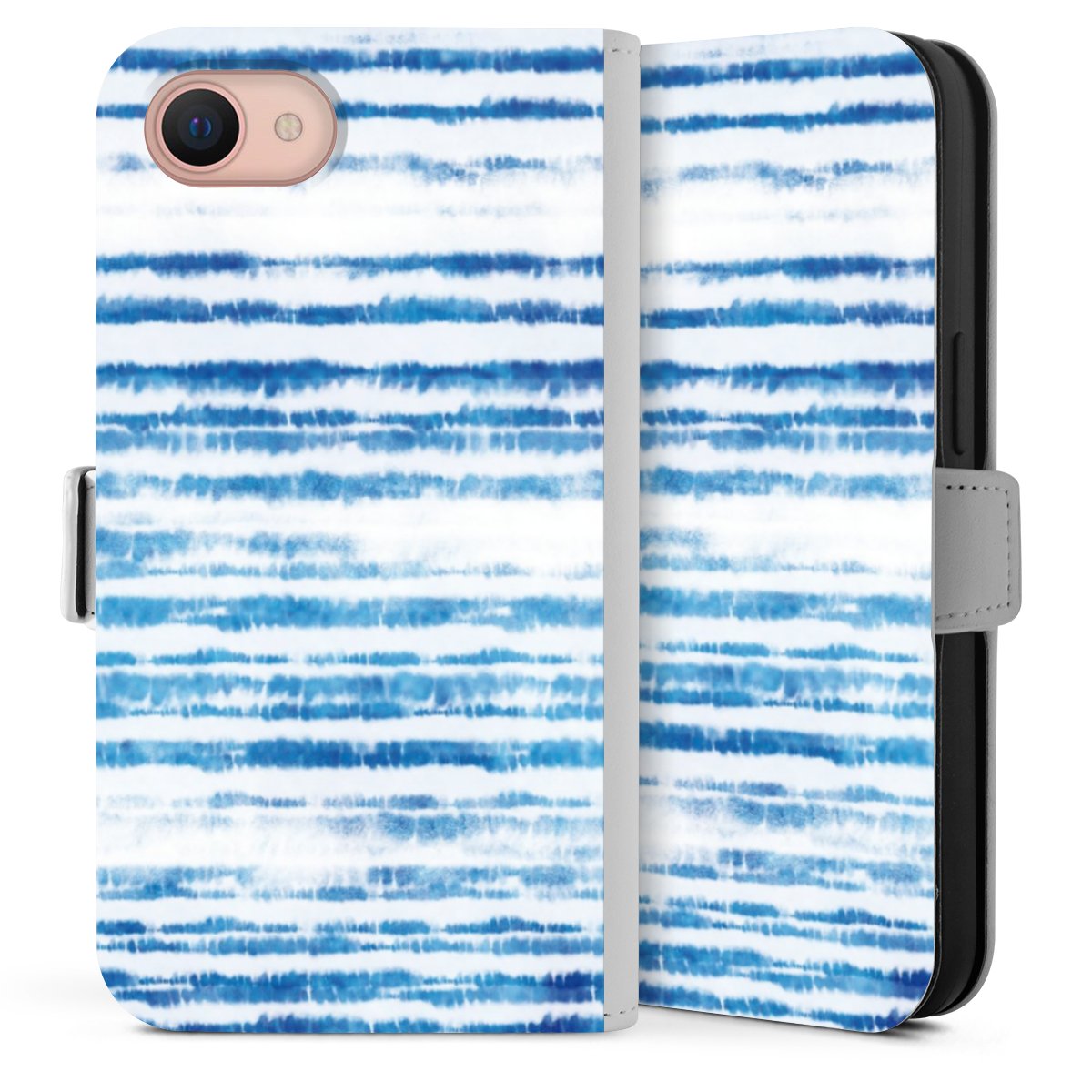 Bei dieser Handyhülle nutzen wir das solide Direktdruck-Verfahren. Der Druckbereich umfasst die Vorder- und Rückseite, die Innenseiten bleiben unbedruckt. Die Handyhülle kann sowohl unbedruckt, als auch vollflächig oder partiell bedruckt bestellt werden. Beachte hierbei, dass der Druck wie in der Ansicht dargestellt auf dem Rücken unterbrochen ist, damit Dein Druckbild durch das Klappen der Tasche nicht brüchig wird. Der Vorteil bei diesem Produkt: aufgrund der seitlich angebrachten Lasche wird kein Teil des Druckbildes verdeckt.