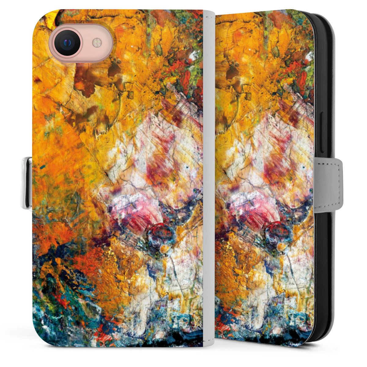 Bei dieser Handyhülle nutzen wir das solide Direktdruck-Verfahren. Der Druckbereich umfasst die Vorder- und Rückseite, die Innenseiten bleiben unbedruckt. Die Handyhülle kann sowohl unbedruckt, als auch vollflächig oder partiell bedruckt bestellt werden. Beachte hierbei, dass der Druck wie in der Ansicht dargestellt auf dem Rücken unterbrochen ist, damit Dein Druckbild durch das Klappen der Tasche nicht brüchig wird. Der Vorteil bei diesem Produkt: aufgrund der seitlich angebrachten Lasche wird kein Teil des Druckbildes verdeckt.