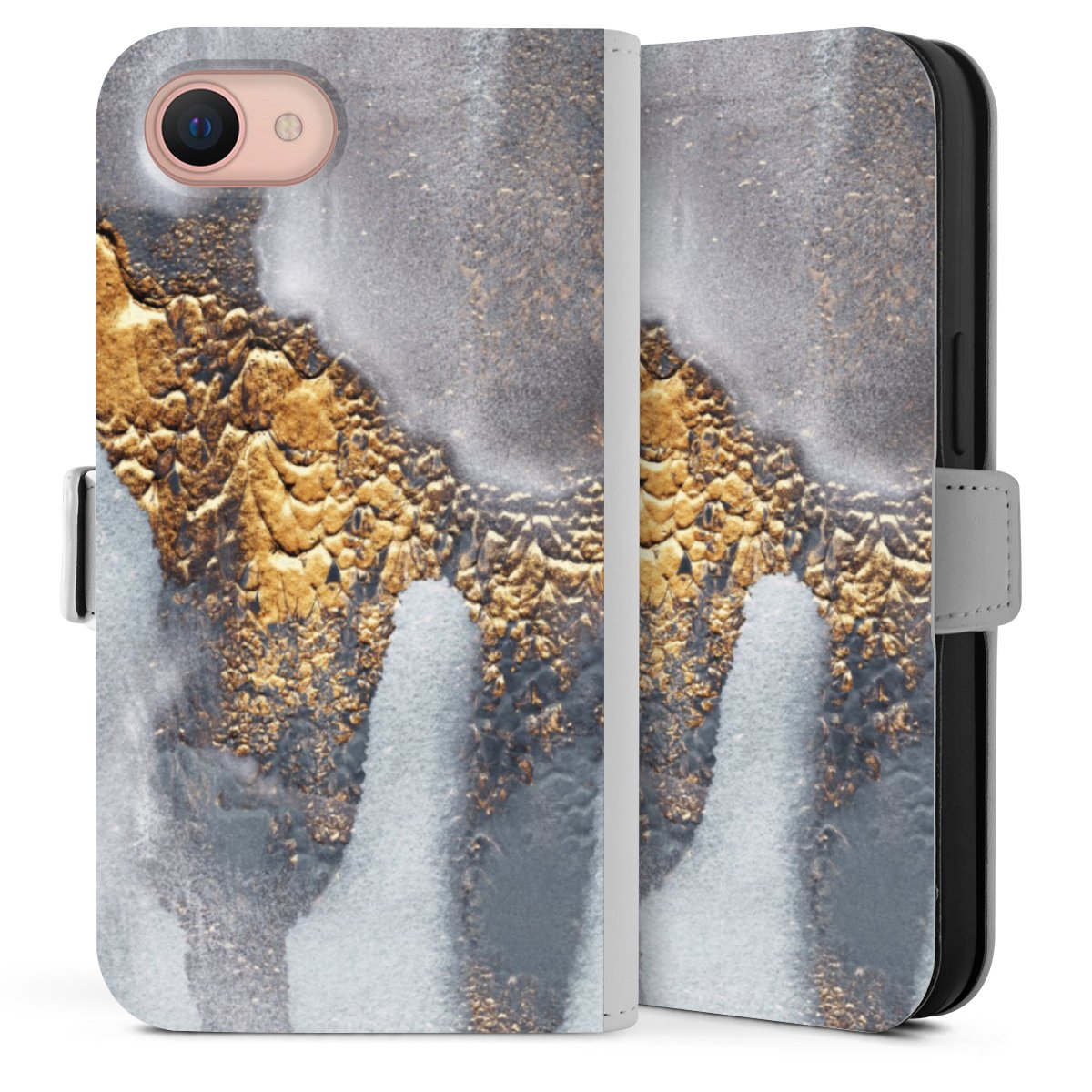 Bei dieser Handyhülle nutzen wir das solide Direktdruck-Verfahren. Der Druckbereich umfasst die Vorder- und Rückseite, die Innenseiten bleiben unbedruckt. Die Handyhülle kann sowohl unbedruckt, als auch vollflächig oder partiell bedruckt bestellt werden. Beachte hierbei, dass der Druck wie in der Ansicht dargestellt auf dem Rücken unterbrochen ist, damit Dein Druckbild durch das Klappen der Tasche nicht brüchig wird. Der Vorteil bei diesem Produkt: aufgrund der seitlich angebrachten Lasche wird kein Teil des Druckbildes verdeckt.