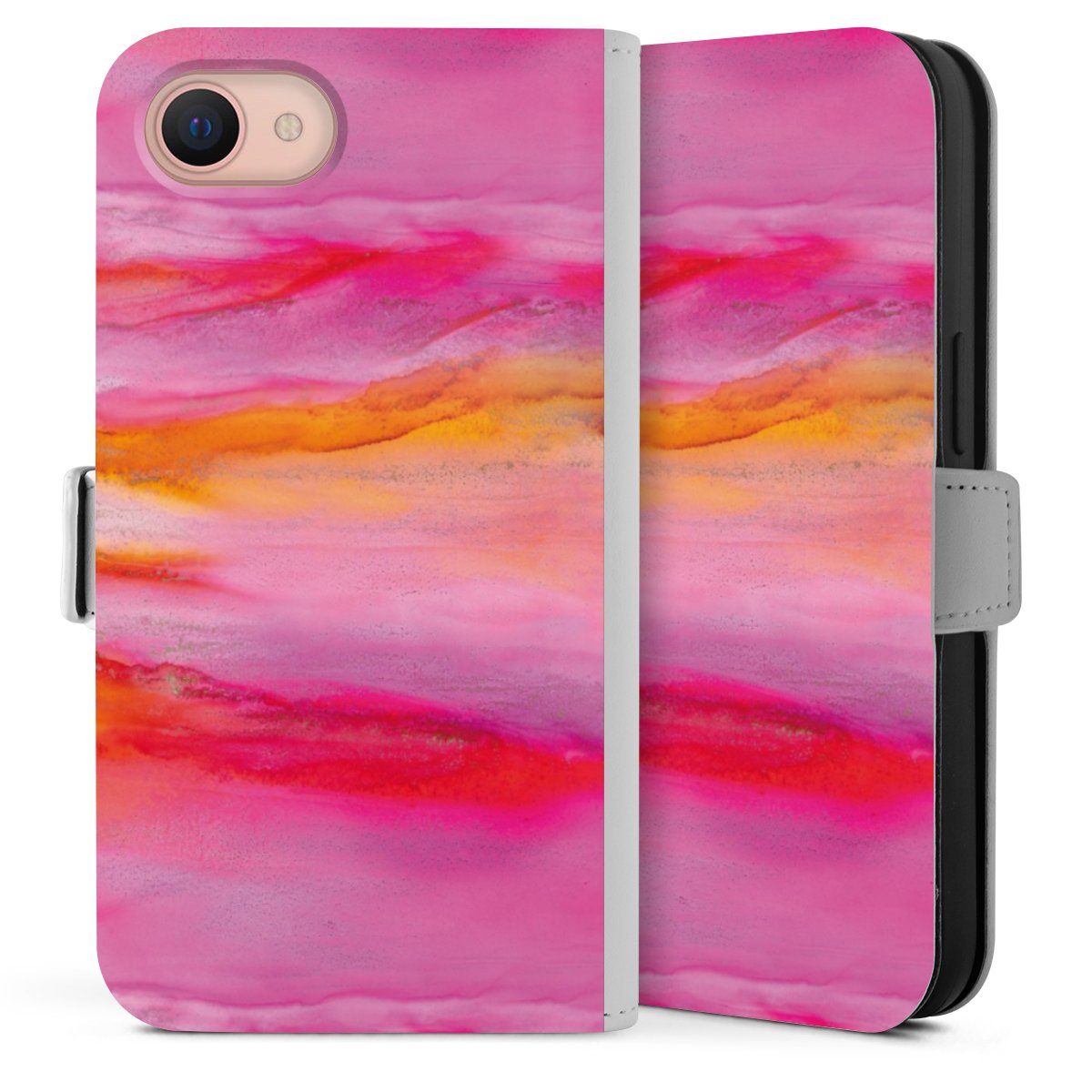 Bei dieser Handyhülle nutzen wir das solide Direktdruck-Verfahren. Der Druckbereich umfasst die Vorder- und Rückseite, die Innenseiten bleiben unbedruckt. Die Handyhülle kann sowohl unbedruckt, als auch vollflächig oder partiell bedruckt bestellt werden. Beachte hierbei, dass der Druck wie in der Ansicht dargestellt auf dem Rücken unterbrochen ist, damit Dein Druckbild durch das Klappen der Tasche nicht brüchig wird. Der Vorteil bei diesem Produkt: aufgrund der seitlich angebrachten Lasche wird kein Teil des Druckbildes verdeckt.