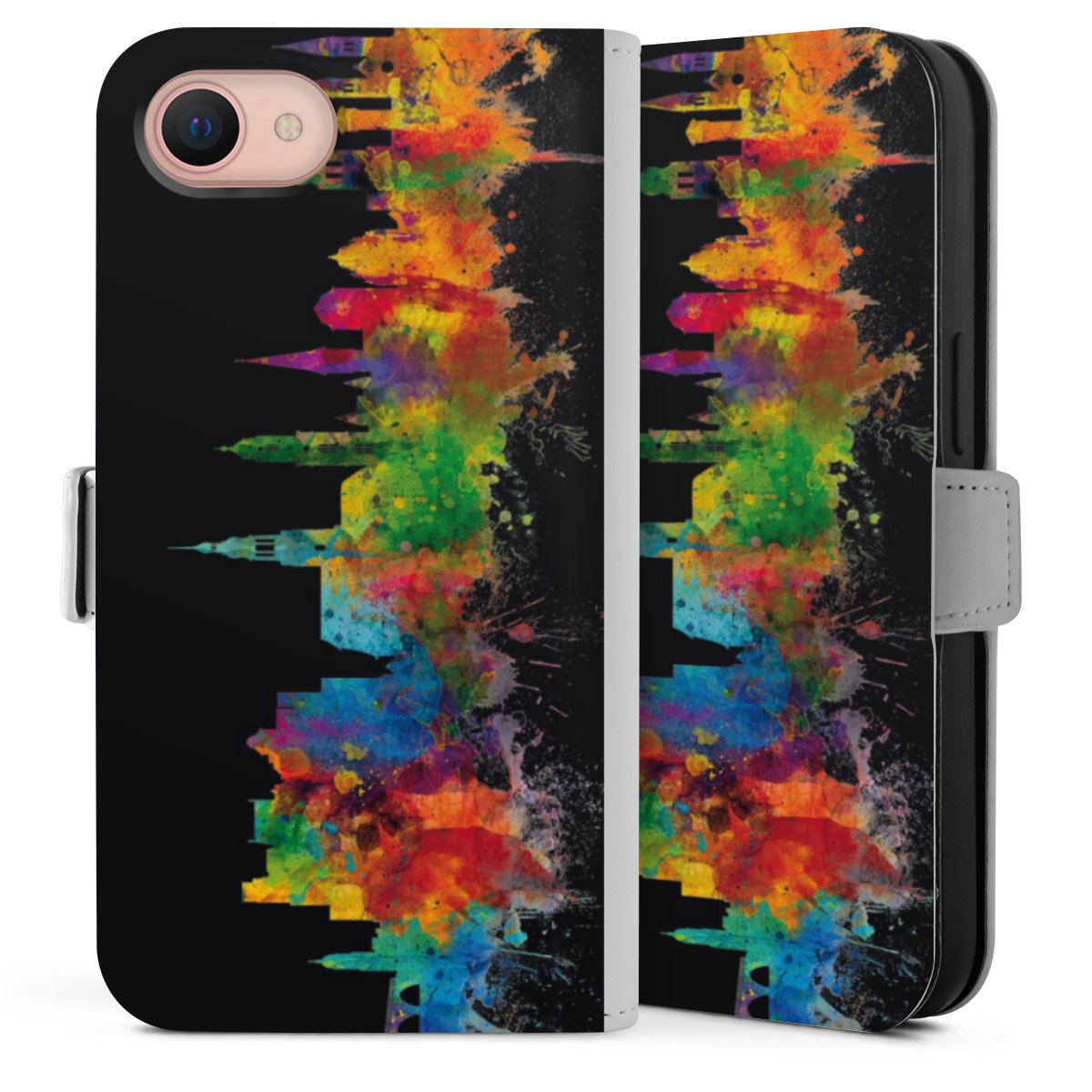 Bei dieser Handyhülle nutzen wir das solide Direktdruck-Verfahren. Der Druckbereich umfasst die Vorder- und Rückseite, die Innenseiten bleiben unbedruckt. Die Handyhülle kann sowohl unbedruckt, als auch vollflächig oder partiell bedruckt bestellt werden. Beachte hierbei, dass der Druck wie in der Ansicht dargestellt auf dem Rücken unterbrochen ist, damit Dein Druckbild durch das Klappen der Tasche nicht brüchig wird. Der Vorteil bei diesem Produkt: aufgrund der seitlich angebrachten Lasche wird kein Teil des Druckbildes verdeckt.