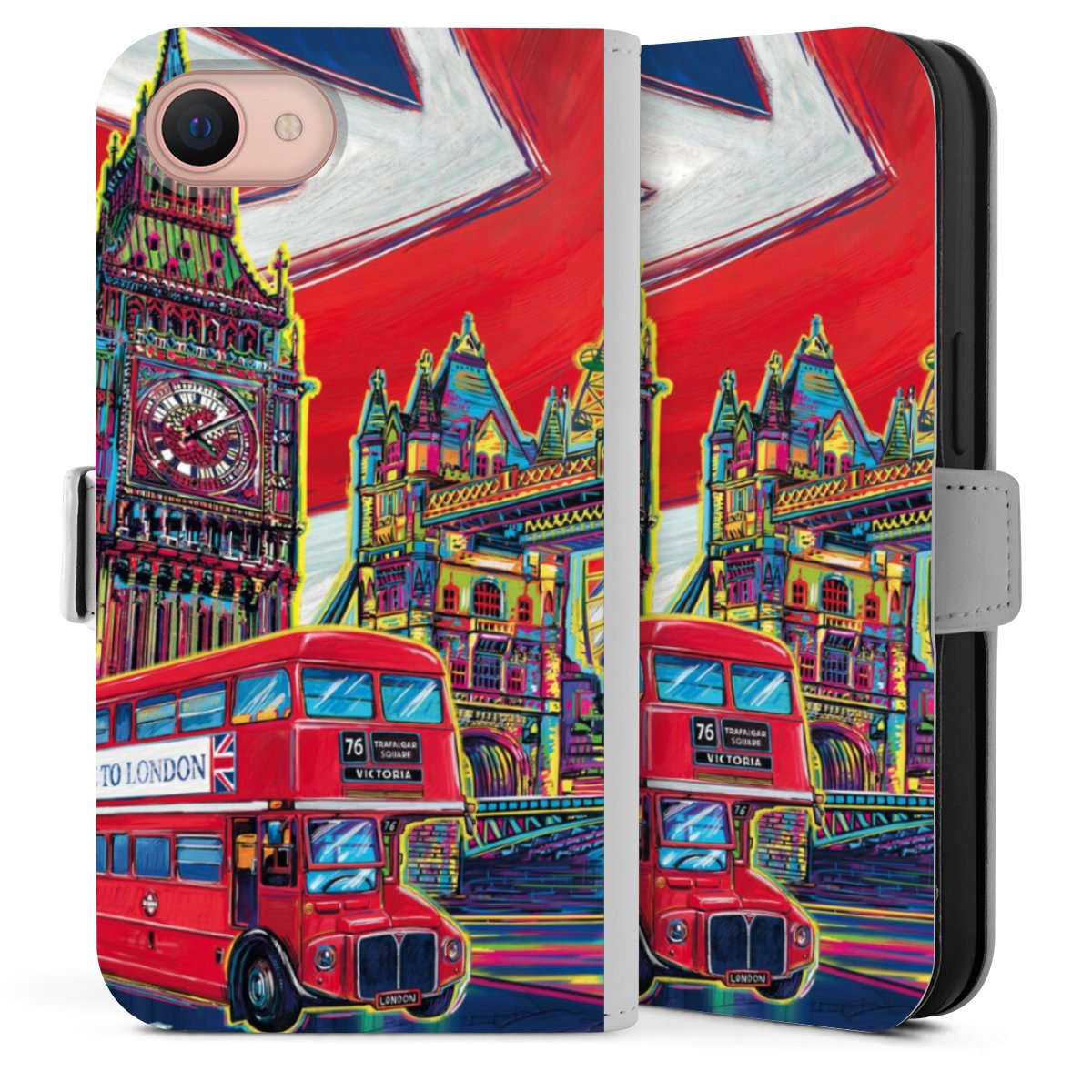 Bei dieser Handyhülle nutzen wir das solide Direktdruck-Verfahren. Der Druckbereich umfasst die Vorder- und Rückseite, die Innenseiten bleiben unbedruckt. Die Handyhülle kann sowohl unbedruckt, als auch vollflächig oder partiell bedruckt bestellt werden. Beachte hierbei, dass der Druck wie in der Ansicht dargestellt auf dem Rücken unterbrochen ist, damit Dein Druckbild durch das Klappen der Tasche nicht brüchig wird. Der Vorteil bei diesem Produkt: aufgrund der seitlich angebrachten Lasche wird kein Teil des Druckbildes verdeckt.