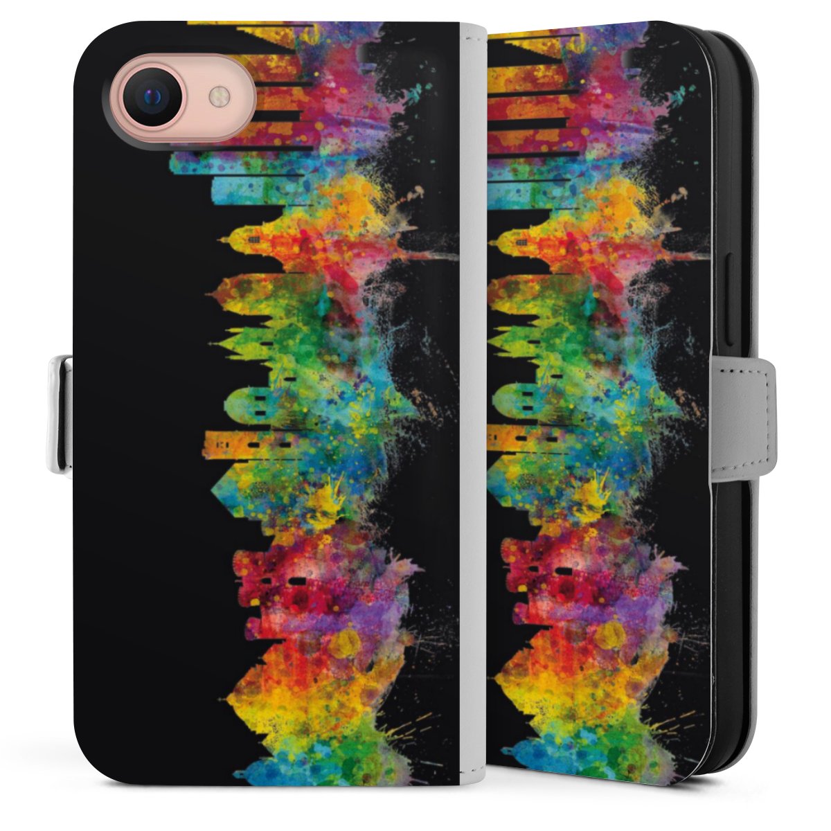 Bei dieser Handyhülle nutzen wir das solide Direktdruck-Verfahren. Der Druckbereich umfasst die Vorder- und Rückseite, die Innenseiten bleiben unbedruckt. Die Handyhülle kann sowohl unbedruckt, als auch vollflächig oder partiell bedruckt bestellt werden. Beachte hierbei, dass der Druck wie in der Ansicht dargestellt auf dem Rücken unterbrochen ist, damit Dein Druckbild durch das Klappen der Tasche nicht brüchig wird. Der Vorteil bei diesem Produkt: aufgrund der seitlich angebrachten Lasche wird kein Teil des Druckbildes verdeckt.