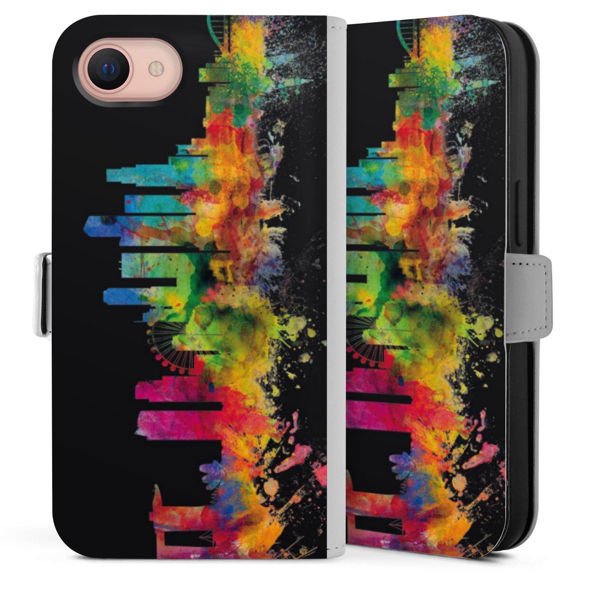 Bei dieser Handyhülle nutzen wir das solide Direktdruck-Verfahren. Der Druckbereich umfasst die Vorder- und Rückseite, die Innenseiten bleiben unbedruckt. Die Handyhülle kann sowohl unbedruckt, als auch vollflächig oder partiell bedruckt bestellt werden. Beachte hierbei, dass der Druck wie in der Ansicht dargestellt auf dem Rücken unterbrochen ist, damit Dein Druckbild durch das Klappen der Tasche nicht brüchig wird. Der Vorteil bei diesem Produkt: aufgrund der seitlich angebrachten Lasche wird kein Teil des Druckbildes verdeckt.