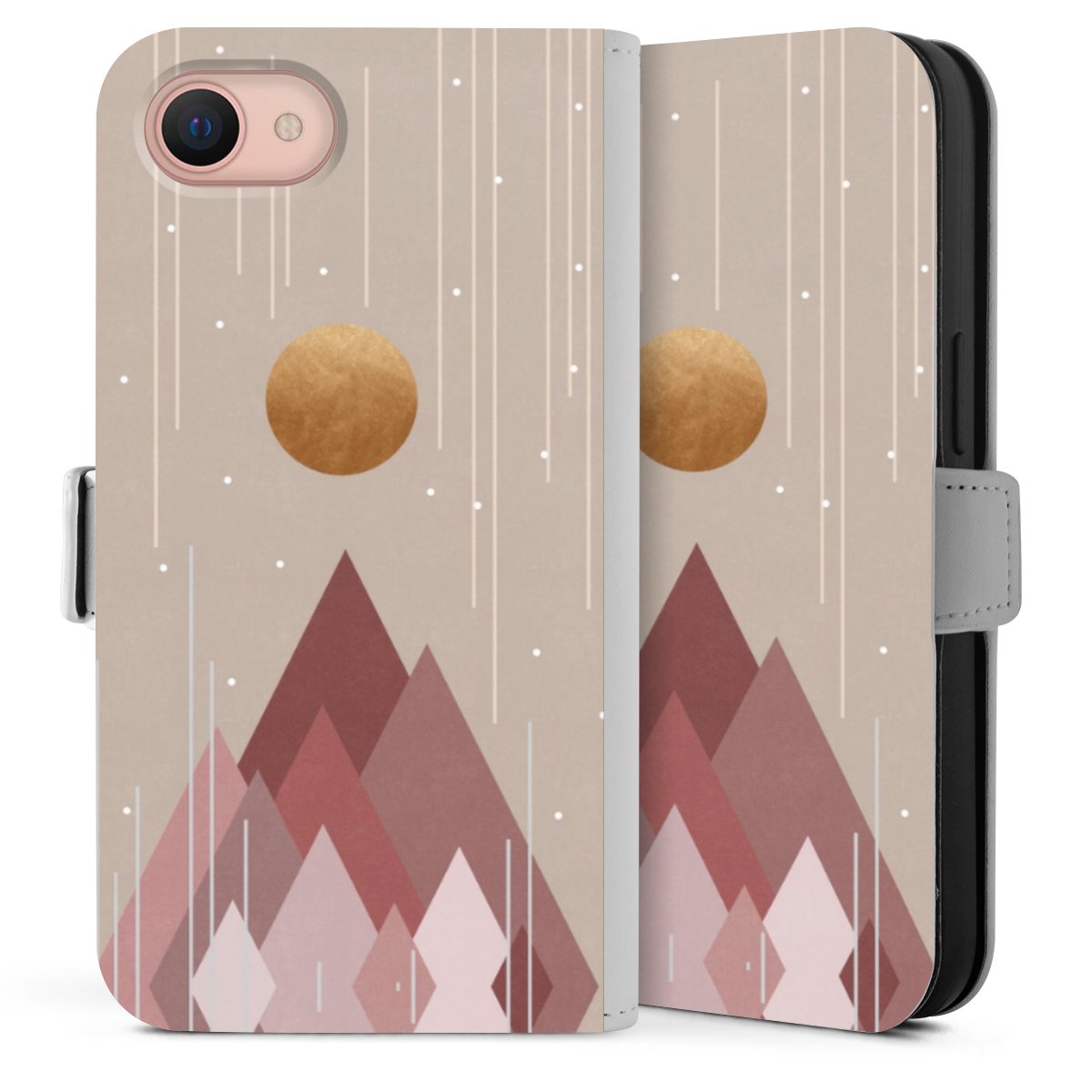 Bei dieser Handyhülle nutzen wir das solide Direktdruck-Verfahren. Der Druckbereich umfasst die Vorder- und Rückseite, die Innenseiten bleiben unbedruckt. Die Handyhülle kann sowohl unbedruckt, als auch vollflächig oder partiell bedruckt bestellt werden. Beachte hierbei, dass der Druck wie in der Ansicht dargestellt auf dem Rücken unterbrochen ist, damit Dein Druckbild durch das Klappen der Tasche nicht brüchig wird. Der Vorteil bei diesem Produkt: aufgrund der seitlich angebrachten Lasche wird kein Teil des Druckbildes verdeckt.