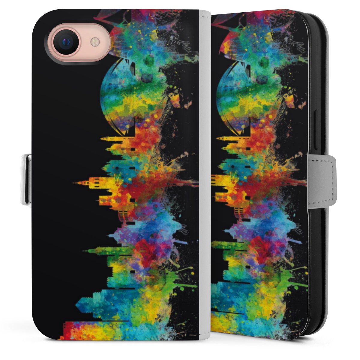 Bei dieser Handyhülle nutzen wir das solide Direktdruck-Verfahren. Der Druckbereich umfasst die Vorder- und Rückseite, die Innenseiten bleiben unbedruckt. Die Handyhülle kann sowohl unbedruckt, als auch vollflächig oder partiell bedruckt bestellt werden. Beachte hierbei, dass der Druck wie in der Ansicht dargestellt auf dem Rücken unterbrochen ist, damit Dein Druckbild durch das Klappen der Tasche nicht brüchig wird. Der Vorteil bei diesem Produkt: aufgrund der seitlich angebrachten Lasche wird kein Teil des Druckbildes verdeckt.