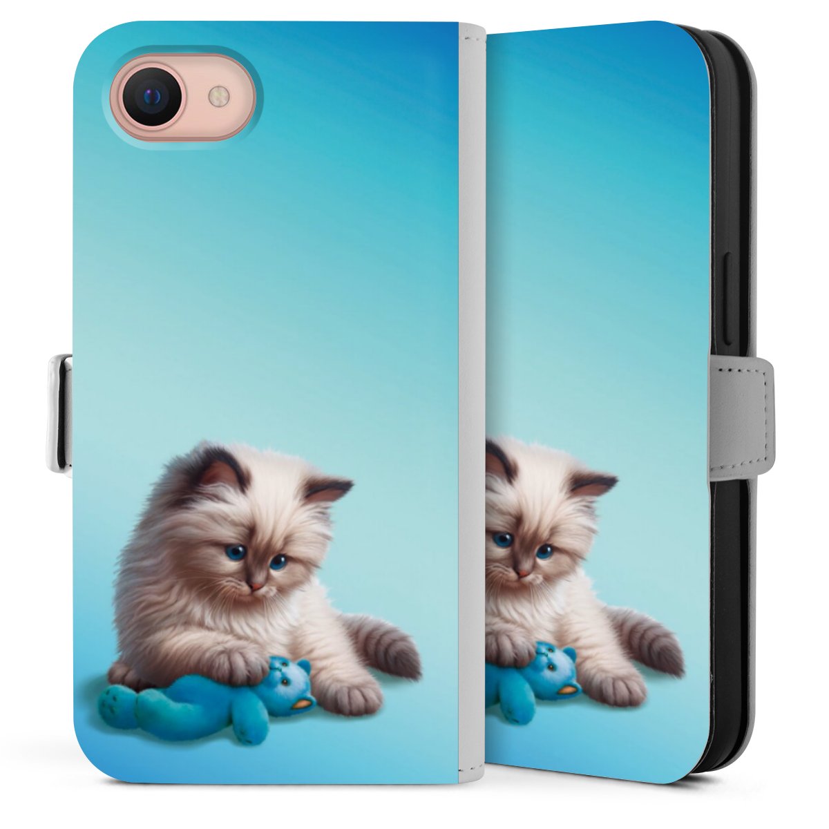 Die praktische Handyhülle schützt dein Handy innen mit einer flexiblen Silikon-Schale, außen kommt ein hochwertiges veganes Skai®-Kunstleder zum Einsatz. Die Handyhülle ist seitlich aufklappbar und hat im schützenden Deckel 2 diagonal vernähte Steckplätze für Karten oder Geldscheine.