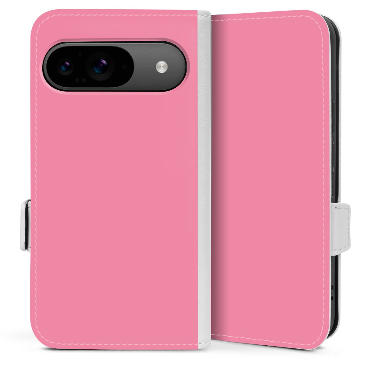 Die praktische Handyhülle schützt dein Handy innen mit einer flexiblen Silikon-Schale, außen kommt ein hochwertiges veganes Skai®-Kunstleder zum Einsatz. Die Handyhülle ist seitlich aufklappbar und hat im schützenden Deckel 2 diagonal vernähte Steckplätze für Karten oder Geldscheine.