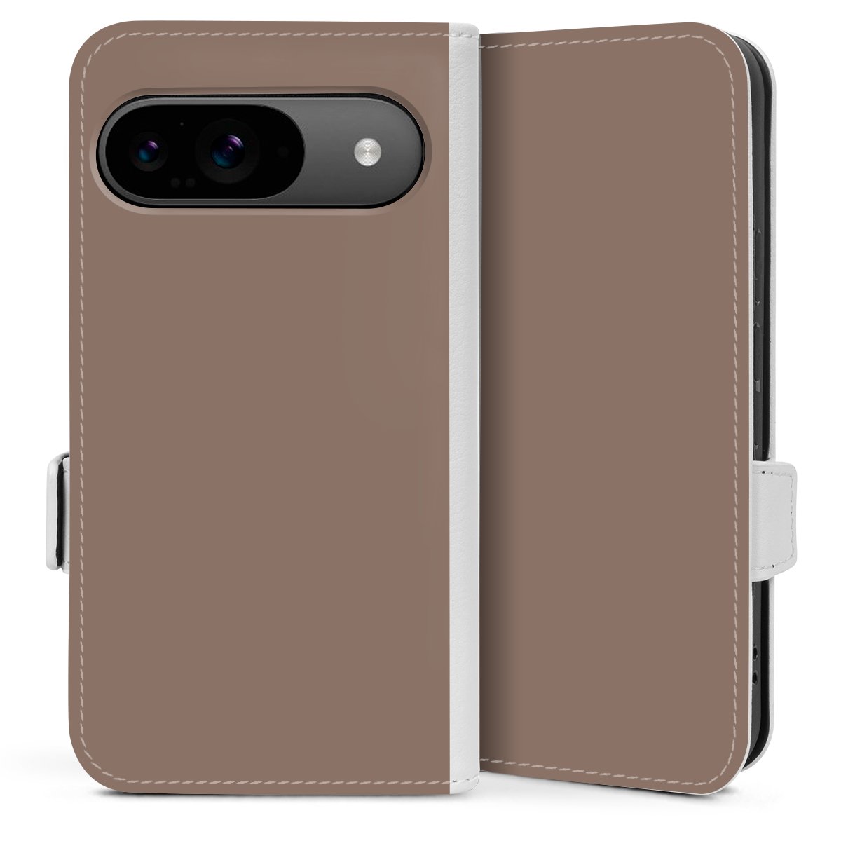 Die praktische Handyhülle schützt dein Handy innen mit einer flexiblen Silikon-Schale, außen kommt ein hochwertiges veganes Skai®-Kunstleder zum Einsatz. Die Handyhülle ist seitlich aufklappbar und hat im schützenden Deckel 2 diagonal vernähte Steckplätze für Karten oder Geldscheine.