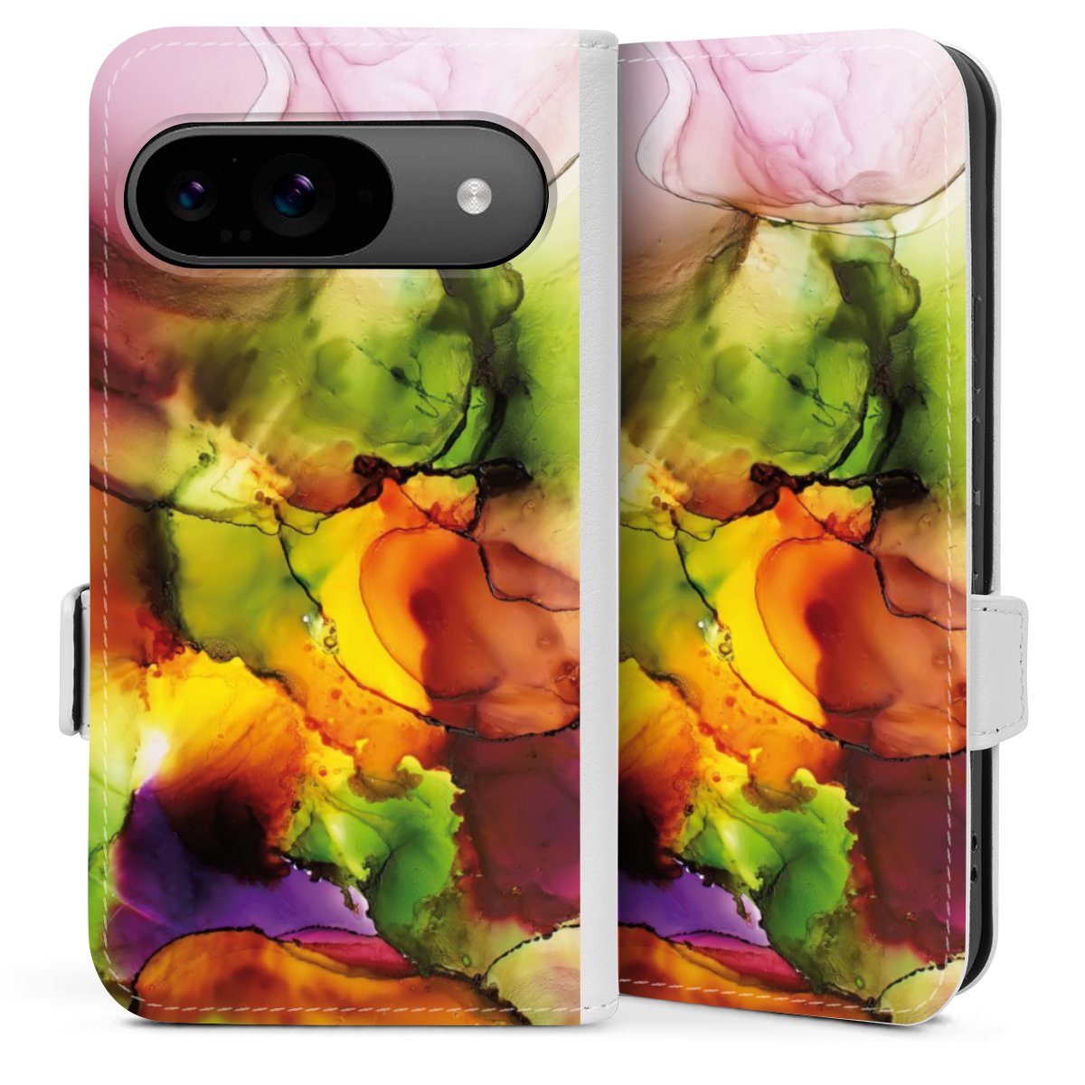 Die praktische Handyhülle schützt dein Handy innen mit einer flexiblen Silikon-Schale, außen kommt ein hochwertiges veganes Skai®-Kunstleder zum Einsatz. Die Handyhülle ist seitlich aufklappbar und hat im schützenden Deckel 2 diagonal vernähte Steckplätze für Karten oder Geldscheine.