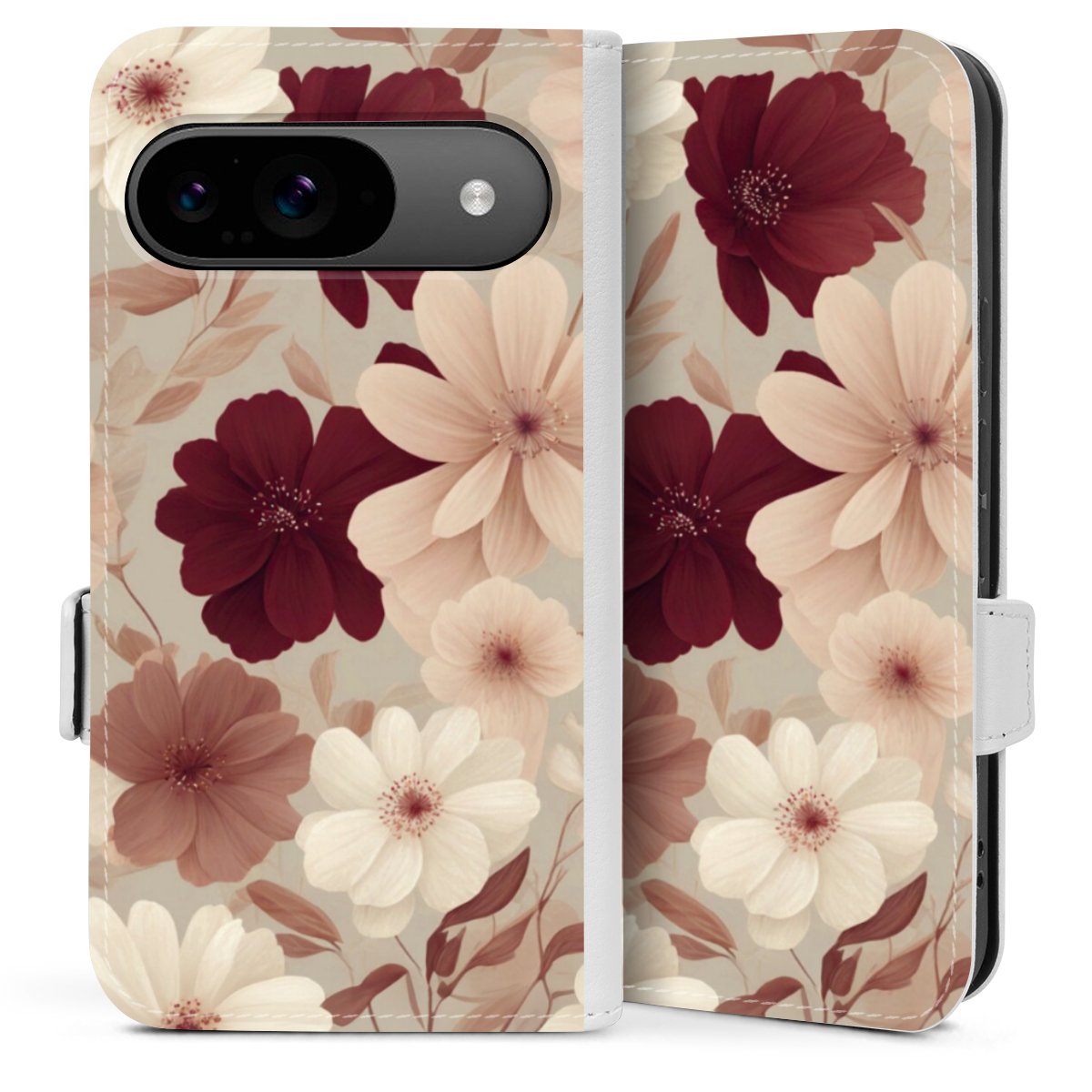 Die praktische Handyhülle schützt dein Handy innen mit einer flexiblen Silikon-Schale, außen kommt ein hochwertiges veganes Skai®-Kunstleder zum Einsatz. Die Handyhülle ist seitlich aufklappbar und hat im schützenden Deckel 2 diagonal vernähte Steckplätze für Karten oder Geldscheine.