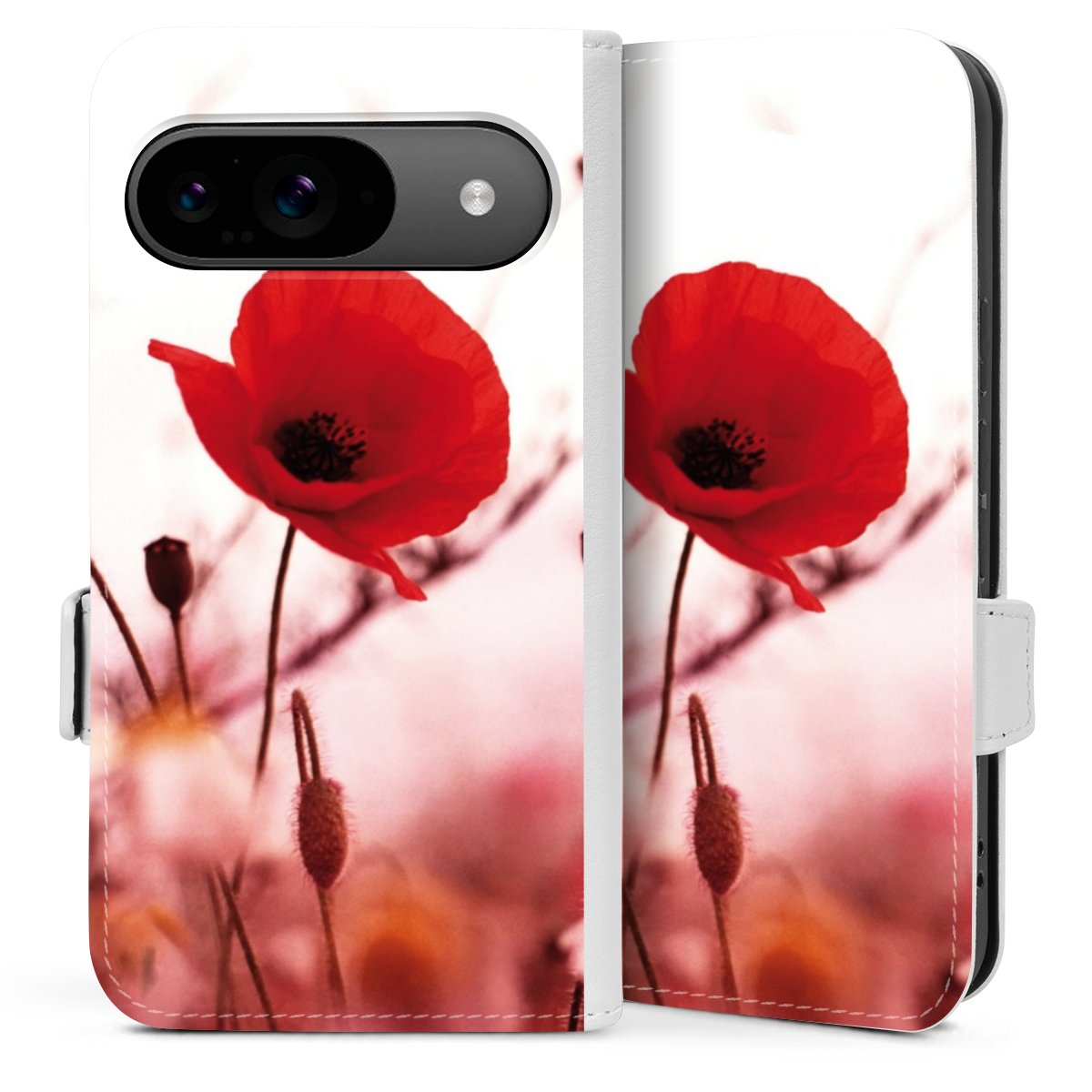 Die praktische Handyhülle schützt dein Handy innen mit einer flexiblen Silikon-Schale, außen kommt ein hochwertiges veganes Skai®-Kunstleder zum Einsatz. Die Handyhülle ist seitlich aufklappbar und hat im schützenden Deckel 2 diagonal vernähte Steckplätze für Karten oder Geldscheine.