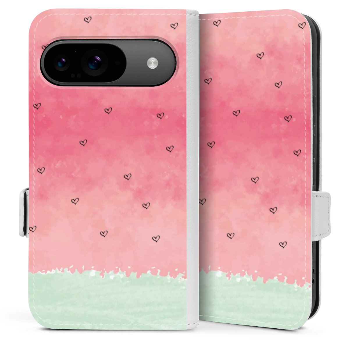 Die praktische Handyhülle schützt dein Handy innen mit einer flexiblen Silikon-Schale, außen kommt ein hochwertiges veganes Skai®-Kunstleder zum Einsatz. Die Handyhülle ist seitlich aufklappbar und hat im schützenden Deckel 2 diagonal vernähte Steckplätze für Karten oder Geldscheine.