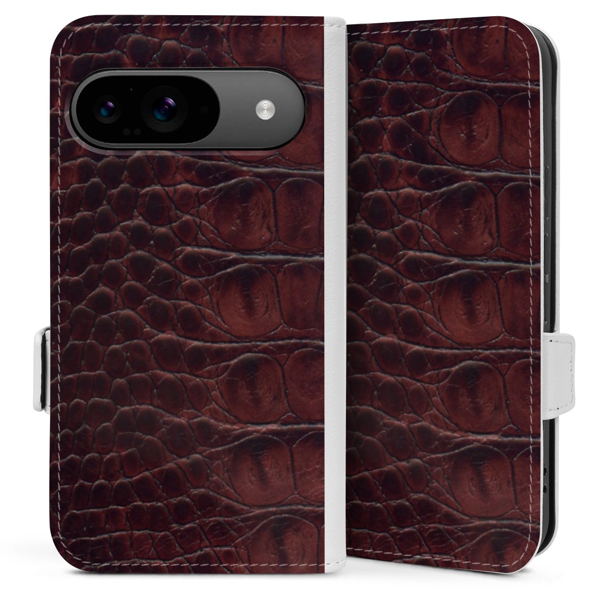 Die praktische Handyhülle schützt dein Handy innen mit einer flexiblen Silikon-Schale, außen kommt ein hochwertiges veganes Skai®-Kunstleder zum Einsatz. Die Handyhülle ist seitlich aufklappbar und hat im schützenden Deckel 2 diagonal vernähte Steckplätze für Karten oder Geldscheine.