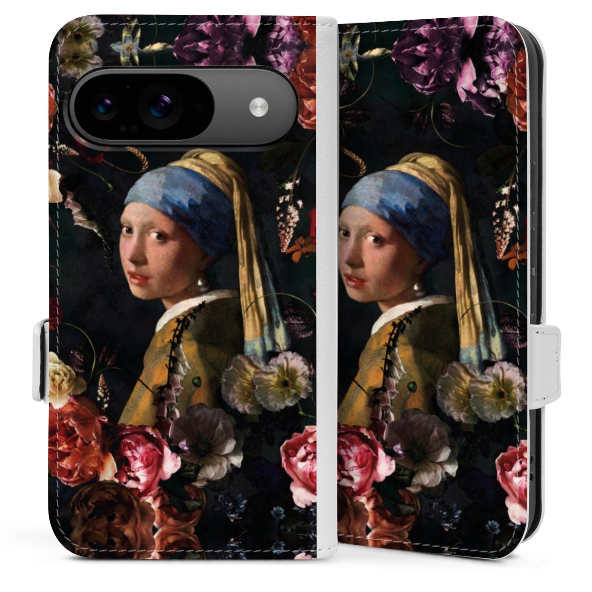 Mädchen mit Perlenohrringen und Rosen