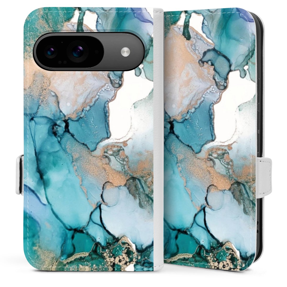 Die praktische Handyhülle schützt dein Handy innen mit einer flexiblen Silikon-Schale, außen kommt ein hochwertiges veganes Skai®-Kunstleder zum Einsatz. Die Handyhülle ist seitlich aufklappbar und hat im schützenden Deckel 2 diagonal vernähte Steckplätze für Karten oder Geldscheine.