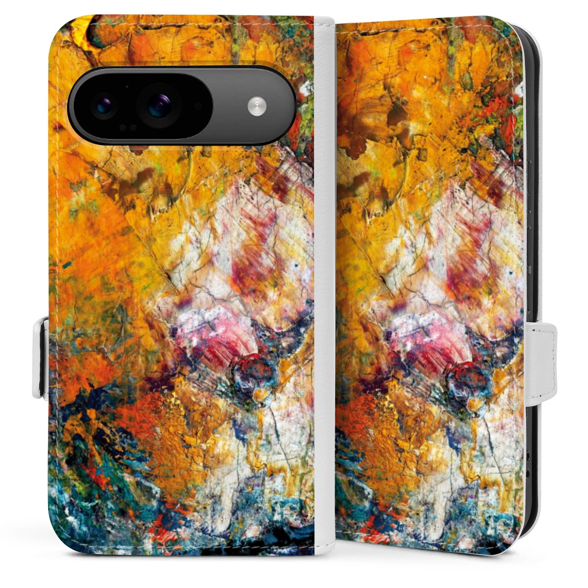 Die praktische Handyhülle schützt dein Handy innen mit einer flexiblen Silikon-Schale, außen kommt ein hochwertiges veganes Skai®-Kunstleder zum Einsatz. Die Handyhülle ist seitlich aufklappbar und hat im schützenden Deckel 2 diagonal vernähte Steckplätze für Karten oder Geldscheine.