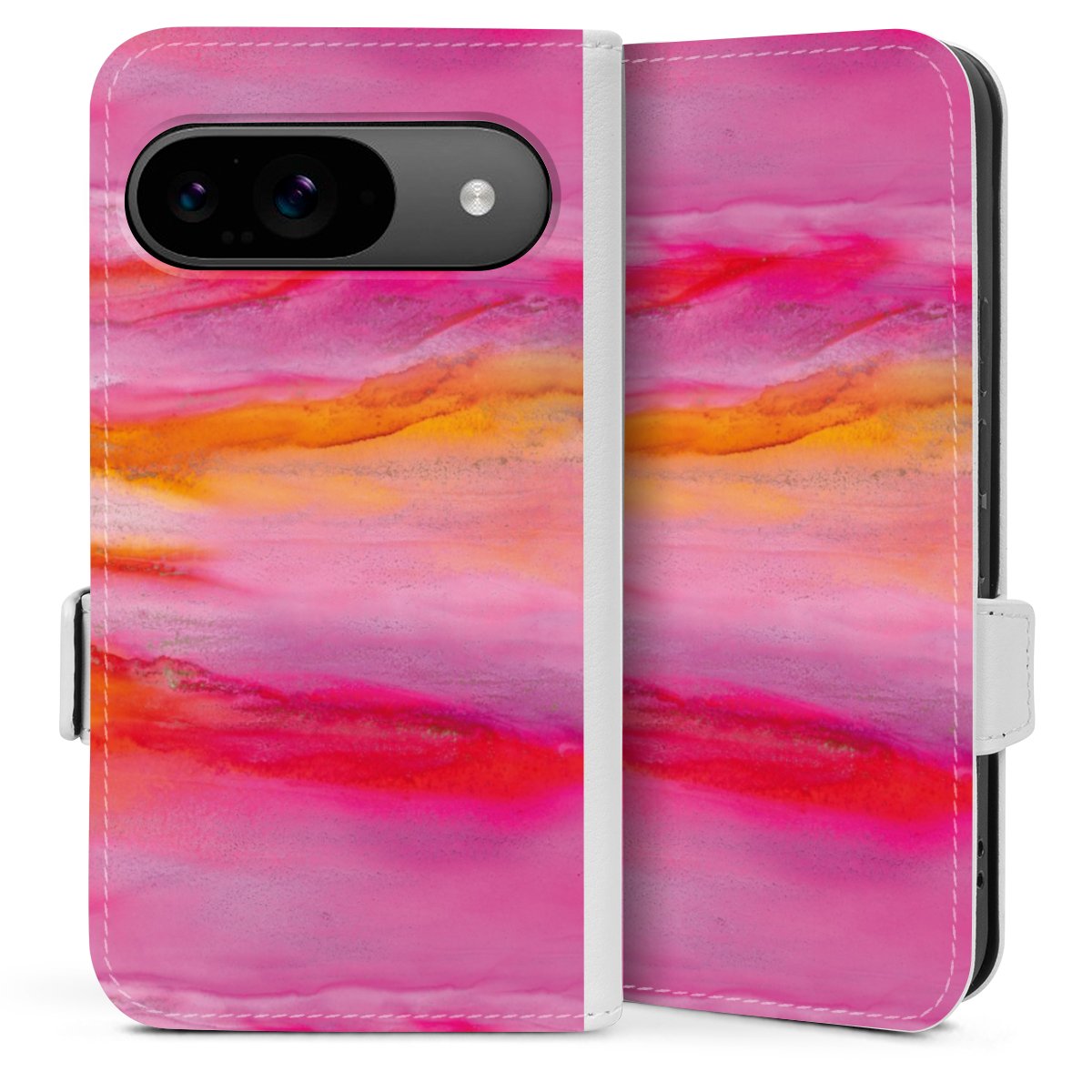 Die praktische Handyhülle schützt dein Handy innen mit einer flexiblen Silikon-Schale, außen kommt ein hochwertiges veganes Skai®-Kunstleder zum Einsatz. Die Handyhülle ist seitlich aufklappbar und hat im schützenden Deckel 2 diagonal vernähte Steckplätze für Karten oder Geldscheine.