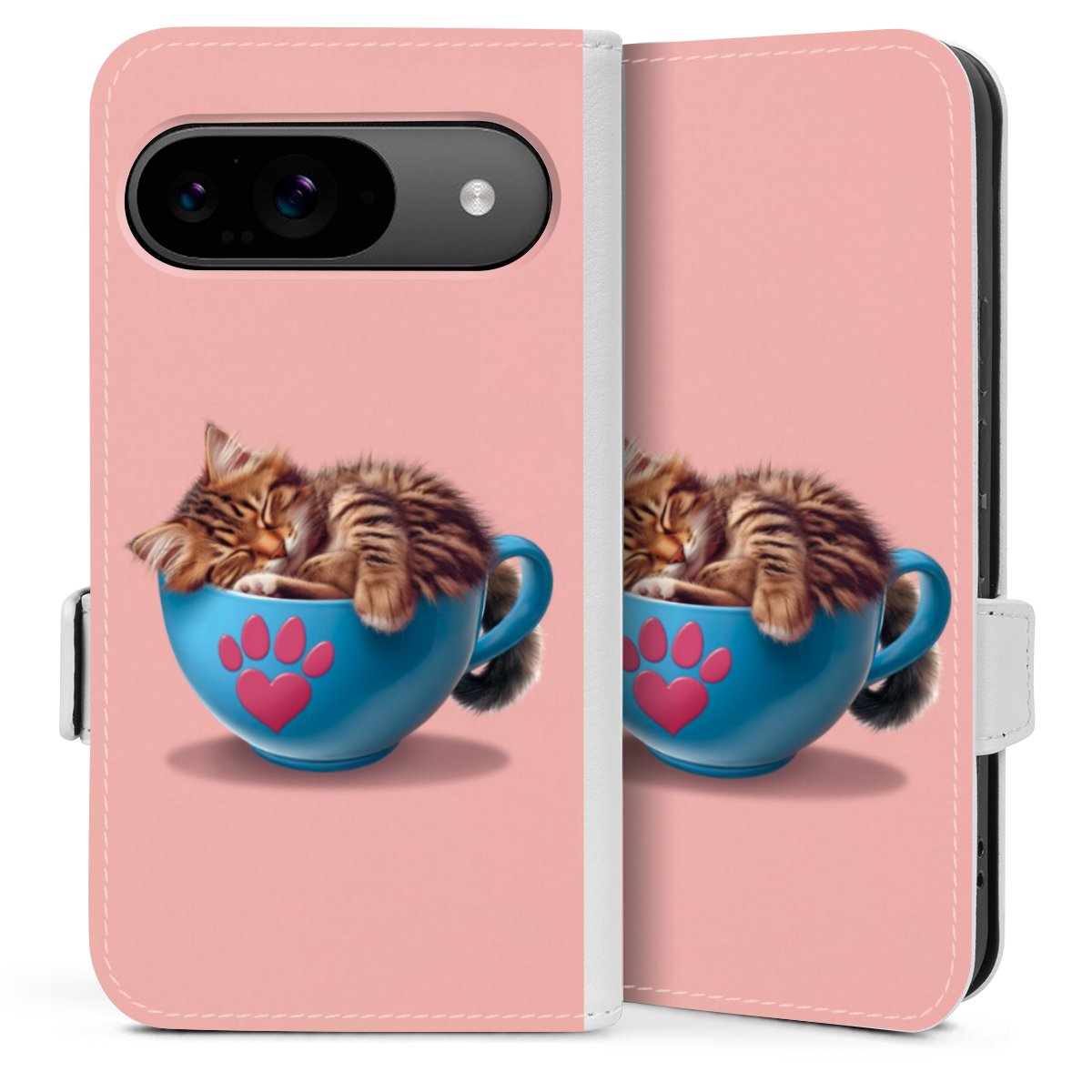 Die praktische Handyhülle schützt dein Handy innen mit einer flexiblen Silikon-Schale, außen kommt ein hochwertiges veganes Skai®-Kunstleder zum Einsatz. Die Handyhülle ist seitlich aufklappbar und hat im schützenden Deckel 2 diagonal vernähte Steckplätze für Karten oder Geldscheine.