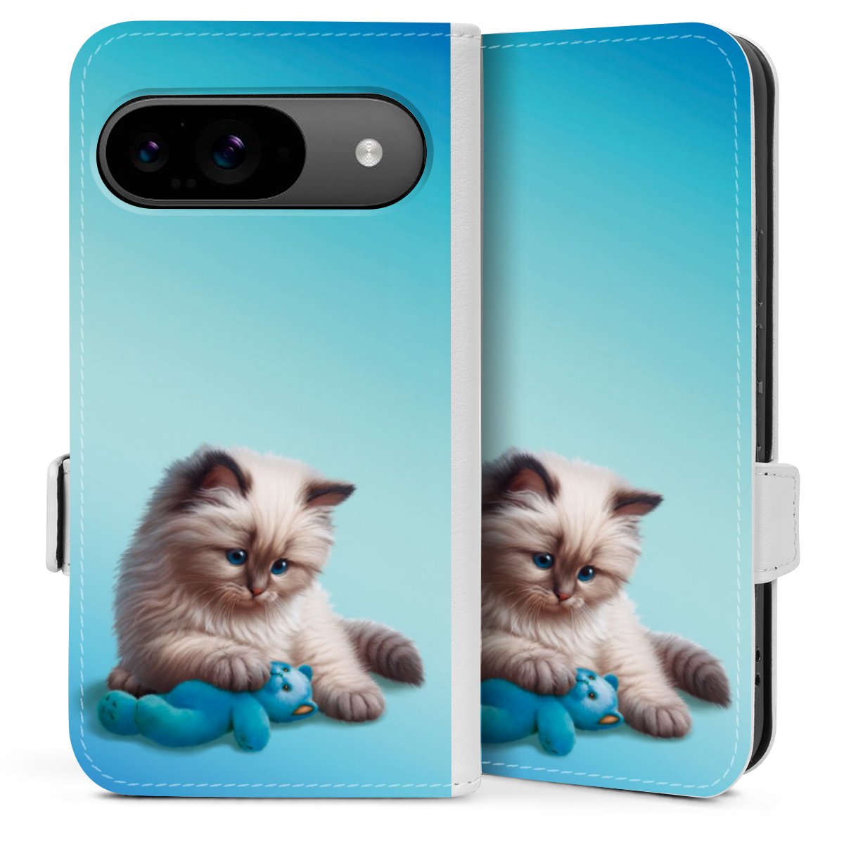 Die praktische Handyhülle schützt dein Handy innen mit einer flexiblen Silikon-Schale, außen kommt ein hochwertiges veganes Skai®-Kunstleder zum Einsatz. Die Handyhülle ist seitlich aufklappbar und hat im schützenden Deckel 2 diagonal vernähte Steckplätze für Karten oder Geldscheine.