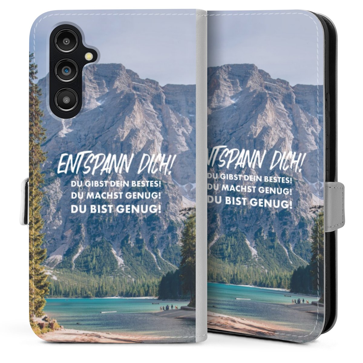 Die Sideflip Handyhülle ist wie für Dich und Dein Handy geschaffen: So gibt es Aussparungen für Anschlüsse, Kamera und Bedienelemente. Die Vorderseite der Hülle deckt Deinen ganzen Bildschirm optimal ab. Durch eine magnetische Lasche an der Seite schließt die Hülle sicher und zuverlässig. Im Handumdrehen kannst Du die Handyhülle anbringen und abnehmen.