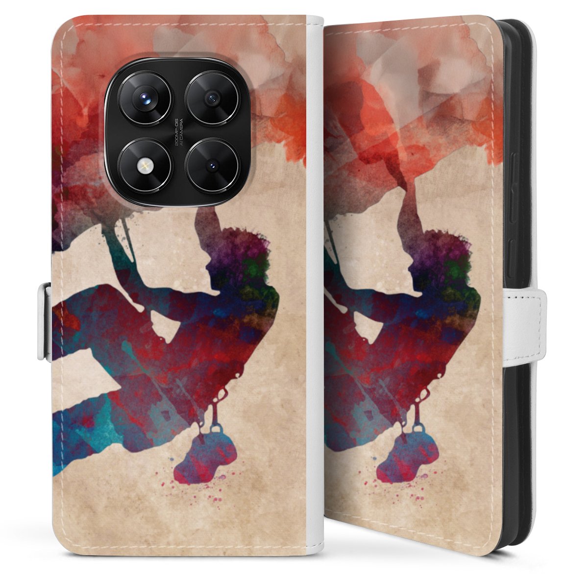 Bei dieser Handyhülle nutzen wir das solide Direktdruck-Verfahren. Der Druckbereich umfasst die Vorder- und Rückseite, die Innenseiten bleiben unbedruckt. Die Handyhülle kann sowohl unbedruckt, als auch vollflächig oder partiell bedruckt bestellt werden. Beachte hierbei, dass der Druck wie in der Ansicht dargestellt auf dem Rücken unterbrochen ist, damit Dein Druckbild durch das Klappen der Tasche nicht brüchig wird. Der Vorteil bei diesem Produkt: aufgrund der seitlich angebrachten Lasche wird kein Teil des Druckbildes verdeckt.