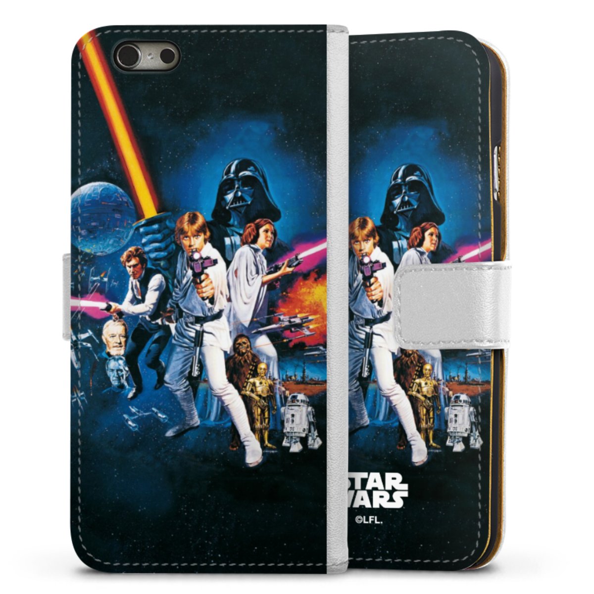 Darth Vader, C3PO, R2D2 und Meister Yoda findest Du in unserem Star Wars Shop auf DeinDesign. Natürlich gibt es auch Star Wars Handyhüllen mit den legendären Charakteren Luke Skywalker, Prinzessin Leia und Han Solo, den Helden der ersten Saga. Wer jedoch die Hauptfiguren der neuen Star Wars Filme ins Herz geschlossen hat, kann auch Finn und Rey mit ihren mächtigen Waffen auf der Rückseite seines Smartphones haben. Die vielseitigen Schutzhüllen in verschiedenen Ausführungen sind das perfekte Geschenk für alle Star Wars Fans, die ihrem Smartphone eine individuelle Note verleihen wollen.
