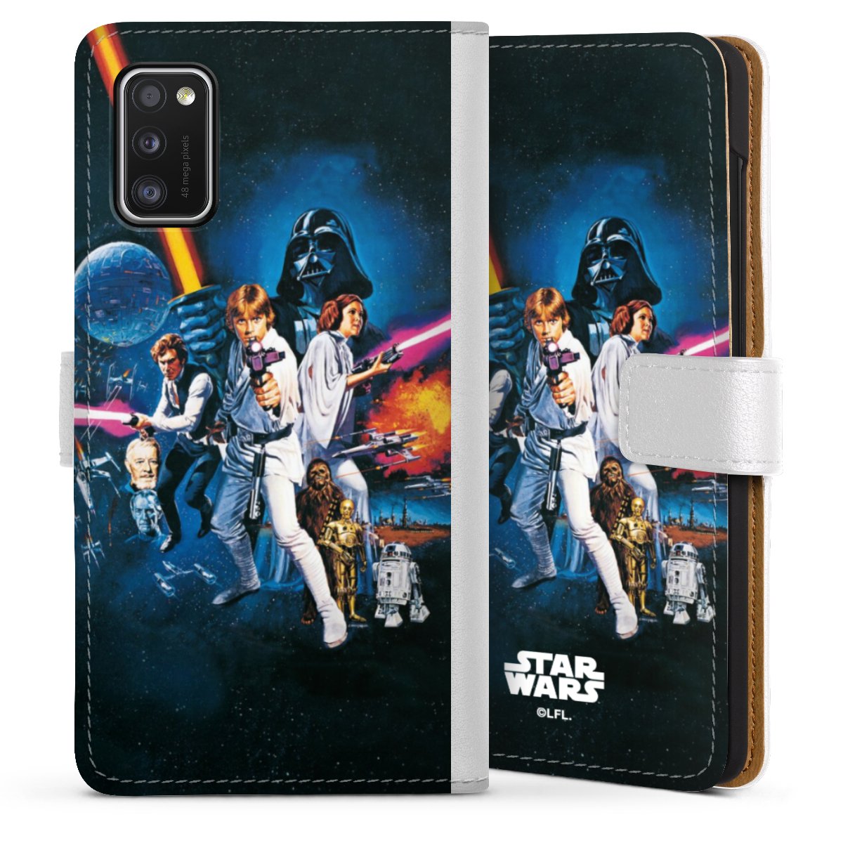 Darth Vader, C3PO, R2D2 und Meister Yoda findest Du in unserem Star Wars Shop auf DeinDesign. Natürlich gibt es auch Star Wars Handyhüllen mit den legendären Charakteren Luke Skywalker, Prinzessin Leia und Han Solo, den Helden der ersten Saga. Wer jedoch die Hauptfiguren der neuen Star Wars Filme ins Herz geschlossen hat, kann auch Finn und Rey mit ihren mächtigen Waffen auf der Rückseite seines Smartphones haben. Die vielseitigen Schutzhüllen in verschiedenen Ausführungen sind das perfekte Geschenk für alle Star Wars Fans, die ihrem Smartphone eine individuelle Note verleihen wollen.