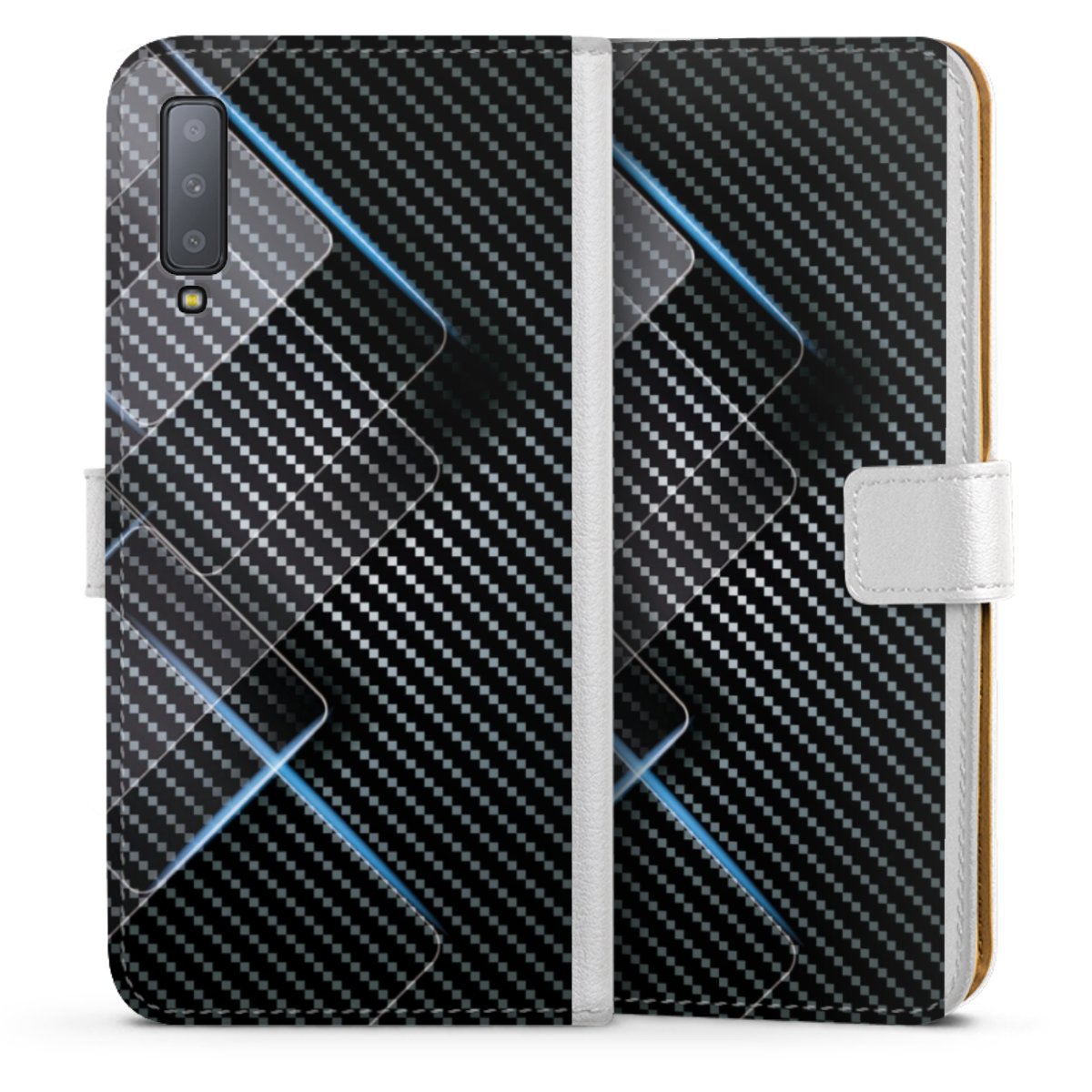 Blaue Linien auf Karbon