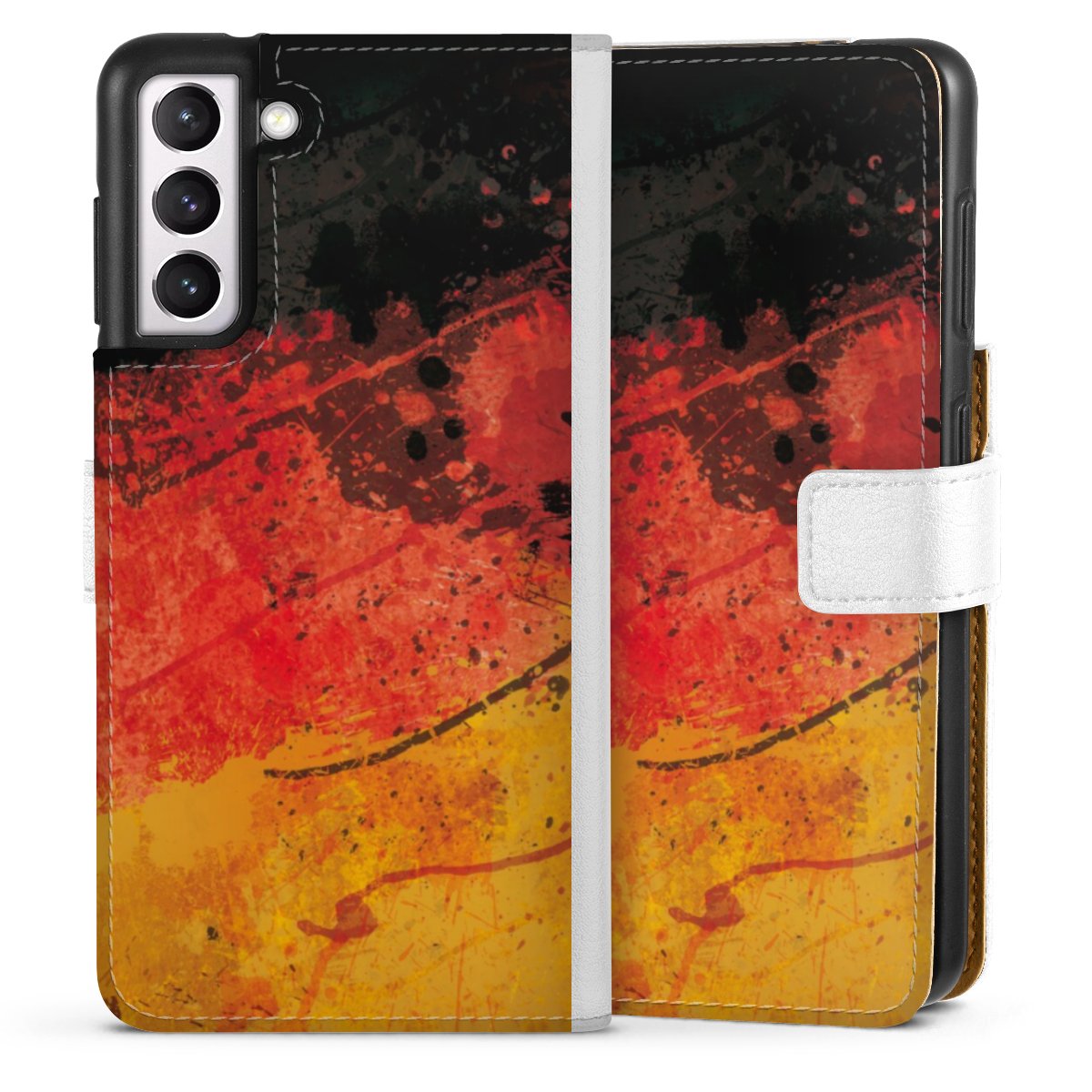 Bei dieser Handyhülle nutzen wir das solide Direktdruck-Verfahren. Der Druckbereich umfasst die Vorder- und Rückseite, der Rand und die Innenseiten bleiben unbedruckt. Die Handyhülle kann sowohl unbedruckt, als auch vollflächig oder partiell bedruckt bestellt werden. Beachte hierbei, wie in der Ansicht dargestellt, der Druck auf dem Rücken unterbrochen ist, damit Dein Druckbild durch das Klappen der Tasche nicht brüchig wird.
