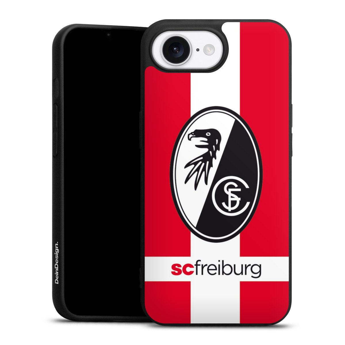 Bei DeinDesign kannst Du Dir eine individuelle SC-Freiburg-Handyhülle aussuchen, auf der das stilvolle schwarz-weiße Logo mit dem Greifenkopf zu sehen ist. Durch eine solche Hülle erhält Dein Smartphone ein unverkennbar individuelles Design. Der SC-Freiburg-Shop bietet lizensierte Fanartikel für alle Fans der Breisgau-Brasilianer.
