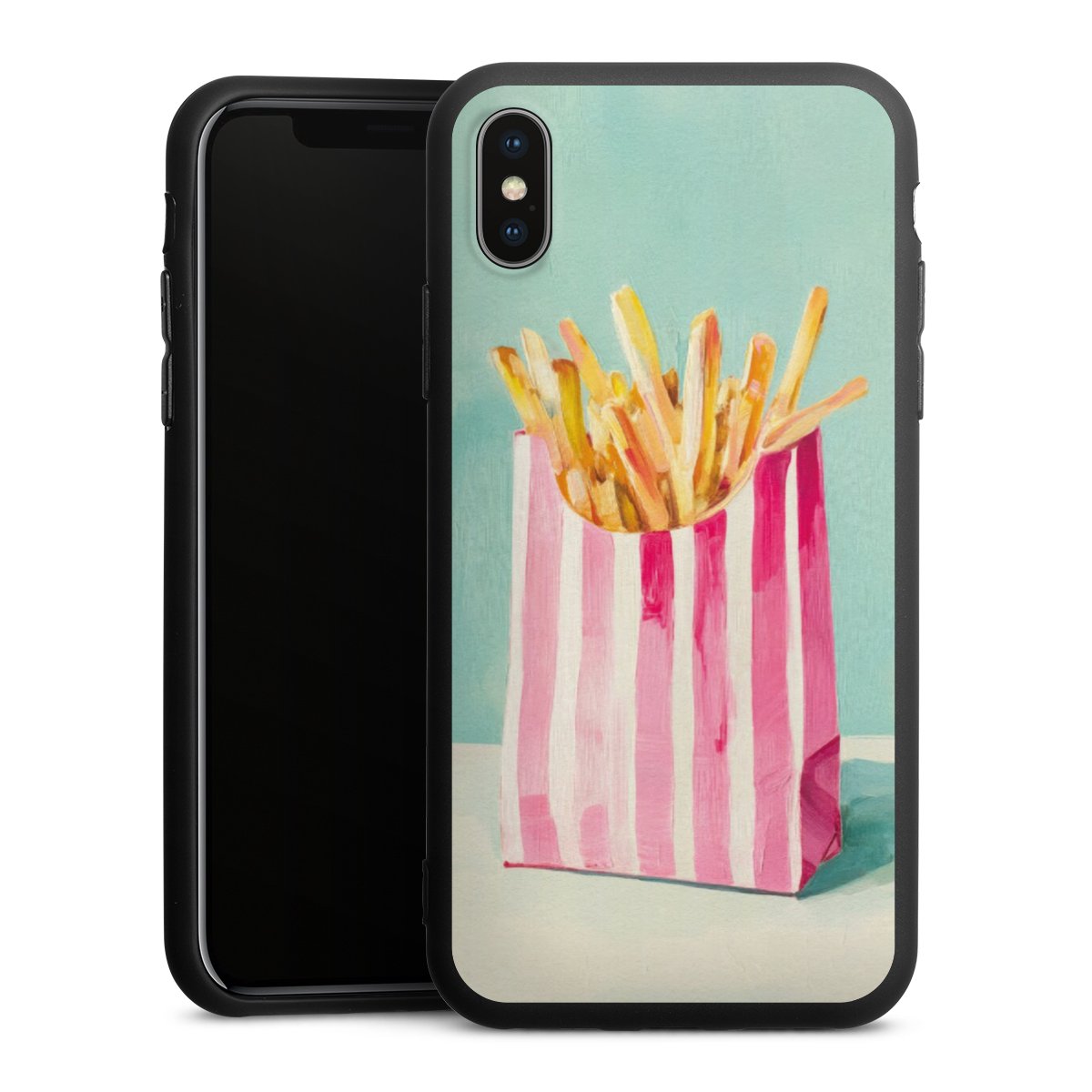 Die flexible Silikonhülle besteht aus robustem TPU (thermoplastisches Polyurethan). Durch das langlebige, bruchsichere Material ist die Hülle biegsam und formbeständig zugleich. Die All Black Edition liegt griffig in der Hand. Die matte Oberfläche lässt Dein Design noch besser zur Geltung kommen und ist weniger anfällig für Fingerabdrücke und Schmutz. Die Handyhülle ist in Mattschwarz erhältlich.