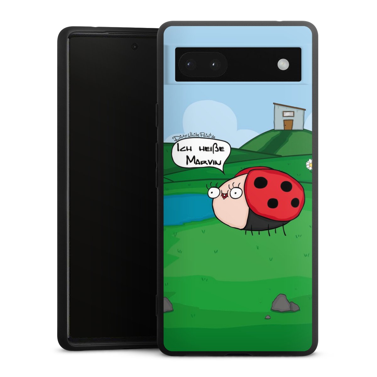 Ob Du Dich nun für Marvin, Günther das Schaf oder doch lieber für die dauerbekiffte Cannabiene entscheidest. Mit einem Motiv von DirtyWhitePaint wird Dein Smartphonen selbst zum Comic.