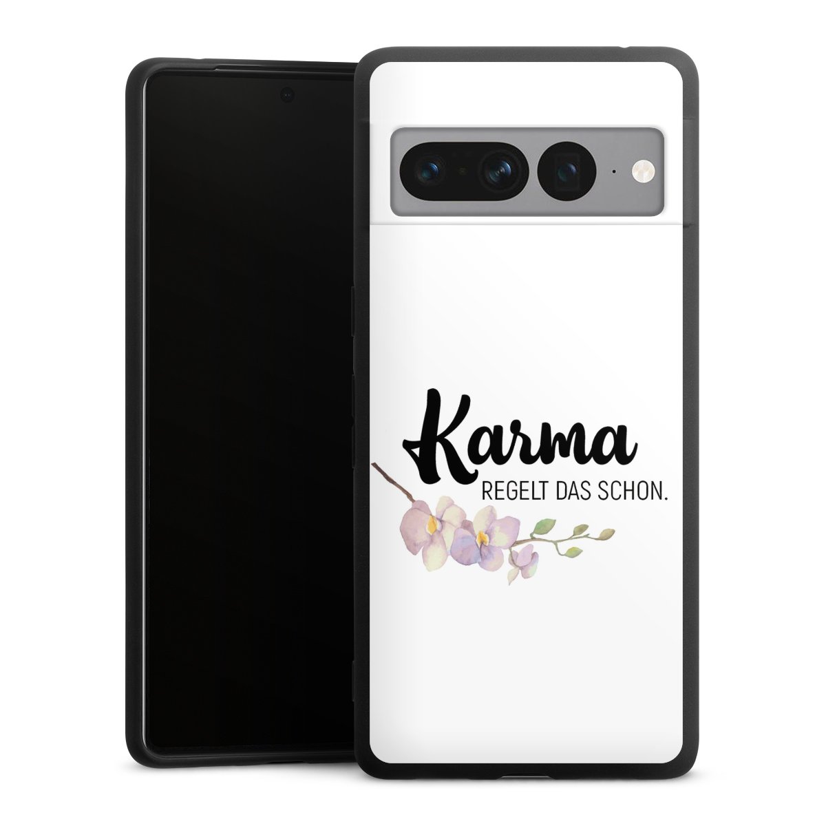 Die flexible Silikonhülle besteht aus robustem TPU (thermoplastisches Polyurethan). Durch das langlebige, bruchsichere Material ist die Hülle biegsam und formbeständig zugleich. Die All Black Edition liegt griffig in der Hand. Die matte Oberfläche lässt Dein Design noch besser zur Geltung kommen und ist weniger anfällig für Fingerabdrücke und Schmutz. Die Handyhülle ist in Mattschwarz erhältlich.