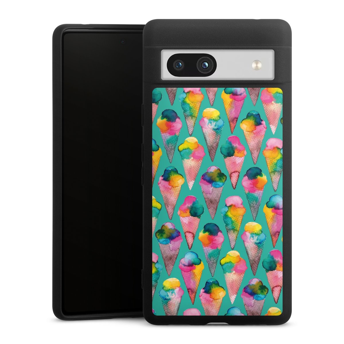 Die flexible Silikonhülle besteht aus robustem TPU (thermoplastisches Polyurethan). Durch das langlebige, bruchsichere Material ist die Hülle biegsam und formbeständig zugleich. Die All Black Edition liegt griffig in der Hand. Die matte Oberfläche lässt Dein Design noch besser zur Geltung kommen und ist weniger anfällig für Fingerabdrücke und Schmutz. Die Handyhülle ist in Mattschwarz erhältlich.