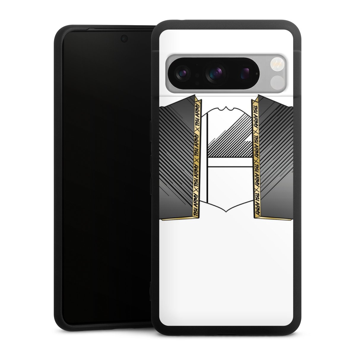 Die flexible Silikonhülle besteht aus robustem TPU (thermoplastisches Polyurethan). Durch das langlebige, bruchsichere Material ist die Hülle biegsam und formbeständig zugleich. Die All Black Edition liegt griffig in der Hand. Die matte Oberfläche lässt Dein Design noch besser zur Geltung kommen und ist weniger anfällig für Fingerabdrücke und Schmutz. Die Handyhülle ist in Mattschwarz erhältlich.