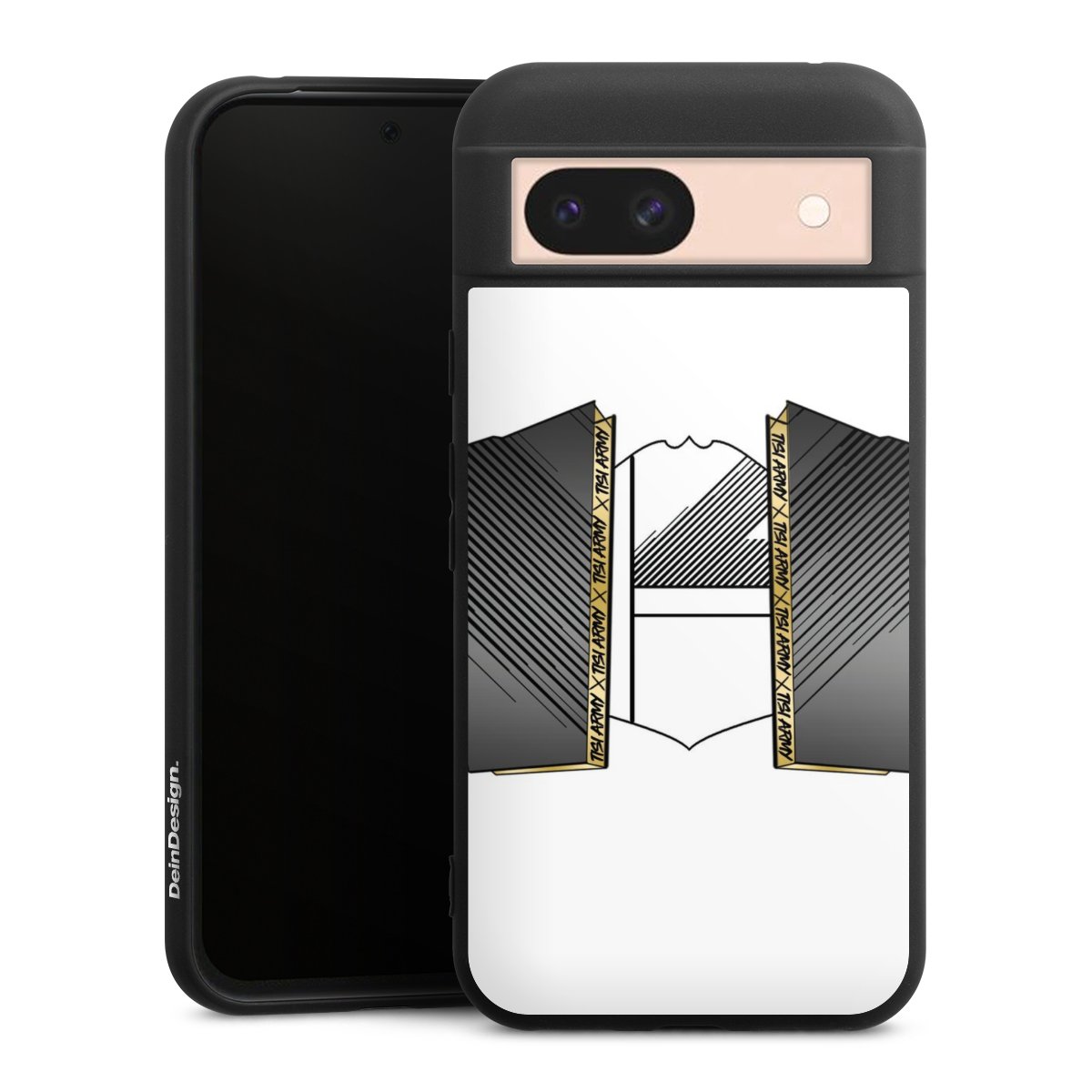 Die flexible Silikonhülle besteht aus robustem TPU (thermoplastisches Polyurethan). Durch das langlebige, bruchsichere Material ist die Hülle biegsam und formbeständig zugleich. Die All Black Edition liegt griffig in der Hand. Die matte Oberfläche lässt Dein Design noch besser zur Geltung kommen und ist weniger anfällig für Fingerabdrücke und Schmutz. Die Handyhülle ist in Mattschwarz erhältlich.