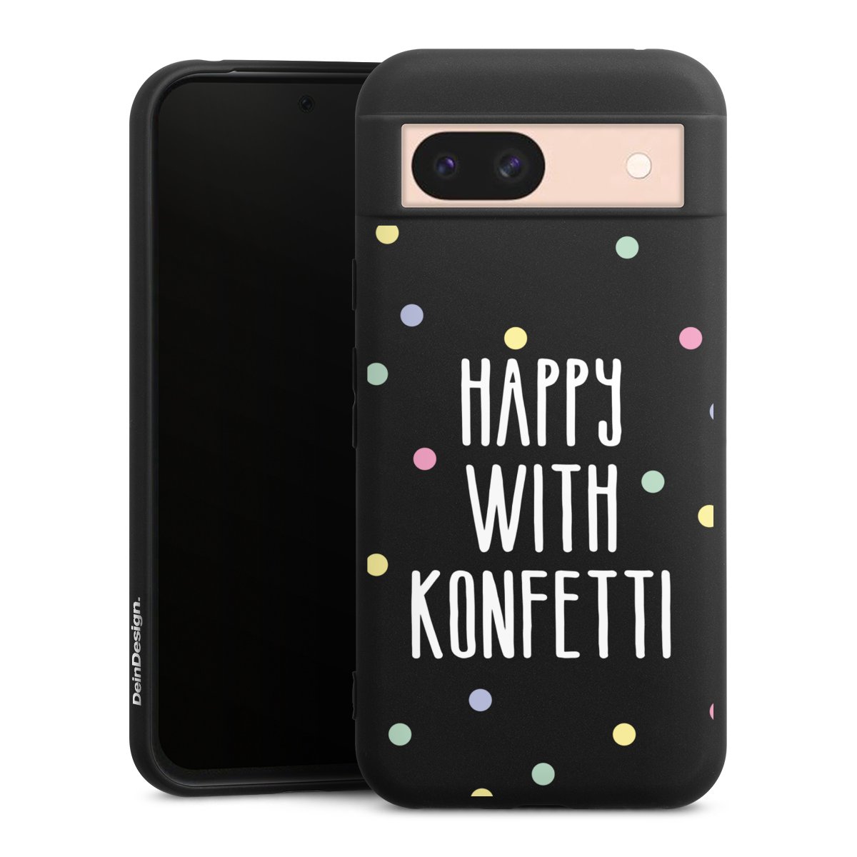 Die flexible Silikonhülle besteht aus robustem TPU (thermoplastisches Polyurethan). Durch das langlebige, bruchsichere Material ist die Hülle biegsam und formbeständig zugleich. Die All Black Edition liegt griffig in der Hand. Die matte Oberfläche lässt Dein Design noch besser zur Geltung kommen und ist weniger anfällig für Fingerabdrücke und Schmutz. Die Handyhülle ist in Mattschwarz erhältlich.