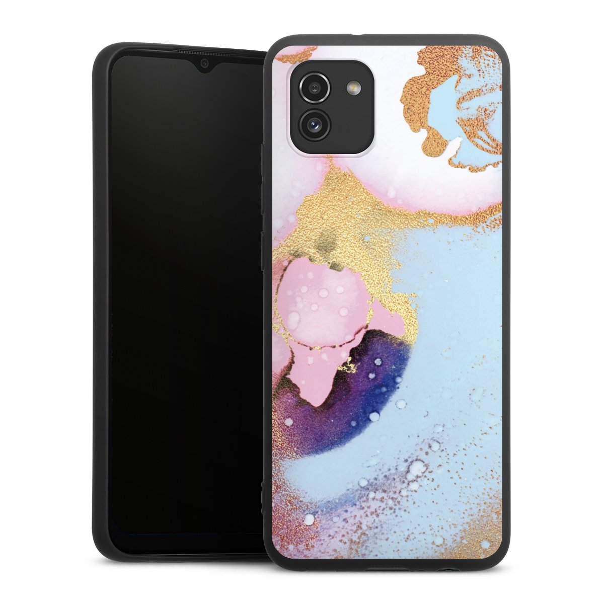 Die flexible Silikonhülle besteht aus robustem TPU (thermoplastisches Polyurethan). Durch das langlebige, bruchsichere Material ist die Hülle biegsam und formbeständig zugleich. Die All Black Edition liegt griffig in der Hand. Die matte Oberfläche lässt Dein Design noch besser zur Geltung kommen und ist weniger anfällig für Fingerabdrücke und Schmutz. Die Handyhülle ist in Mattschwarz erhältlich.