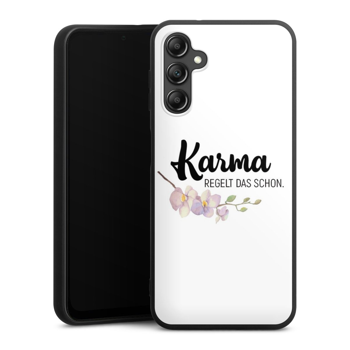 Die flexible Silikonhülle besteht aus robustem TPU (thermoplastisches Polyurethan). Durch das langlebige, bruchsichere Material ist die Hülle biegsam und formbeständig zugleich. Die All Black Edition liegt griffig in der Hand. Die matte Oberfläche lässt Dein Design noch besser zur Geltung kommen und ist weniger anfällig für Fingerabdrücke und Schmutz. Die Handyhülle ist in Mattschwarz erhältlich.