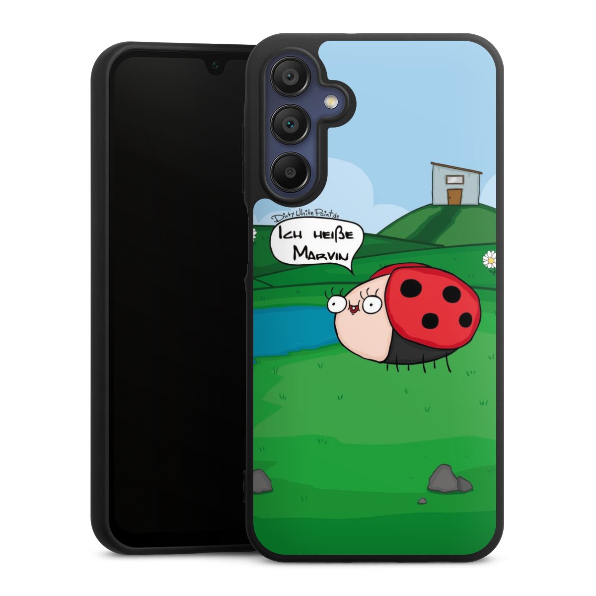 Ob Du Dich nun für Marvin, Günther das Schaf oder doch lieber für die dauerbekiffte Cannabiene entscheidest. Mit einem Motiv von DirtyWhitePaint wird Dein Smartphonen selbst zum Comic.