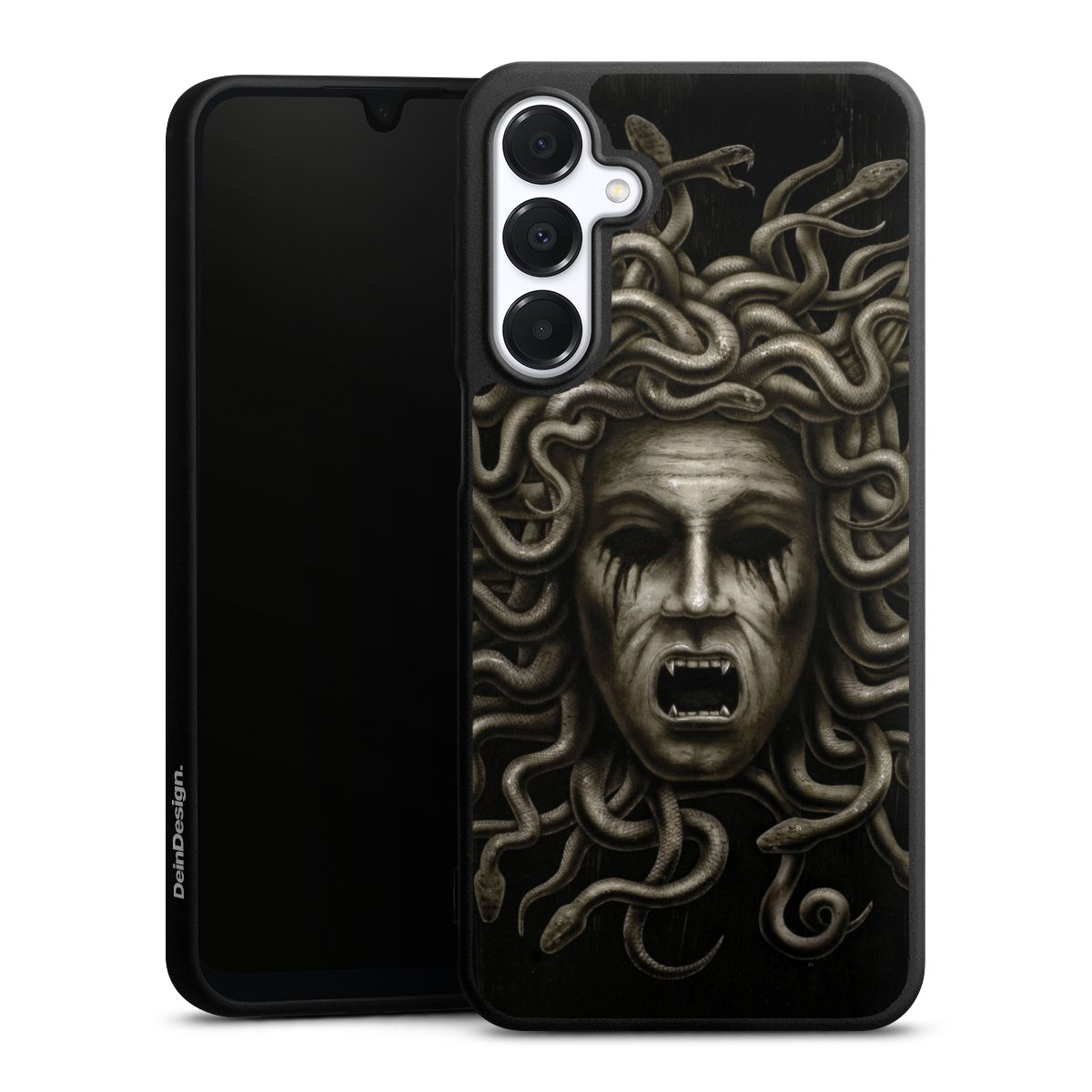 Die flexible Silikonhülle besteht aus robustem TPU (thermoplastisches Polyurethan). Durch das langlebige, bruchsichere Material ist die Hülle biegsam und formbeständig zugleich. Die All Black Edition liegt griffig in der Hand. Die matte Oberfläche lässt Dein Design noch besser zur Geltung kommen und ist weniger anfällig für Fingerabdrücke und Schmutz. Die Handyhülle ist in Mattschwarz erhältlich.