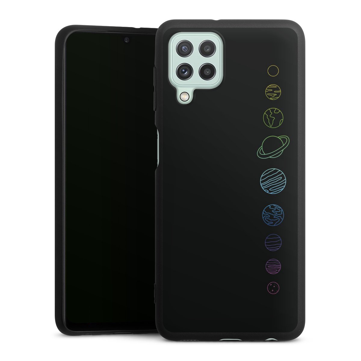 Die flexible Silikonhülle besteht aus robustem TPU (thermoplastisches Polyurethan). Durch das langlebige, bruchsichere Material ist die Hülle biegsam und formbeständig zugleich. Die All Black Edition liegt griffig in der Hand. Die matte Oberfläche lässt Dein Design noch besser zur Geltung kommen und ist weniger anfällig für Fingerabdrücke und Schmutz. Die Handyhülle ist in Mattschwarz erhältlich.