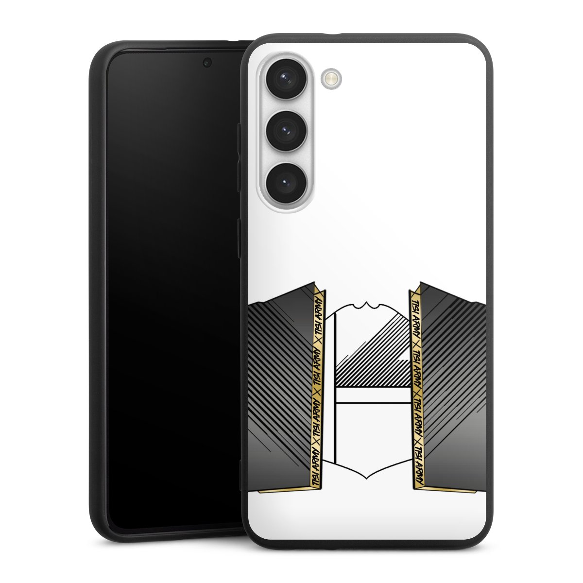 Die flexible Silikonhülle besteht aus robustem TPU (thermoplastisches Polyurethan). Durch das langlebige, bruchsichere Material ist die Hülle biegsam und formbeständig zugleich. Die All Black Edition liegt griffig in der Hand. Die matte Oberfläche lässt Dein Design noch besser zur Geltung kommen und ist weniger anfällig für Fingerabdrücke und Schmutz. Die Handyhülle ist in Mattschwarz erhältlich.