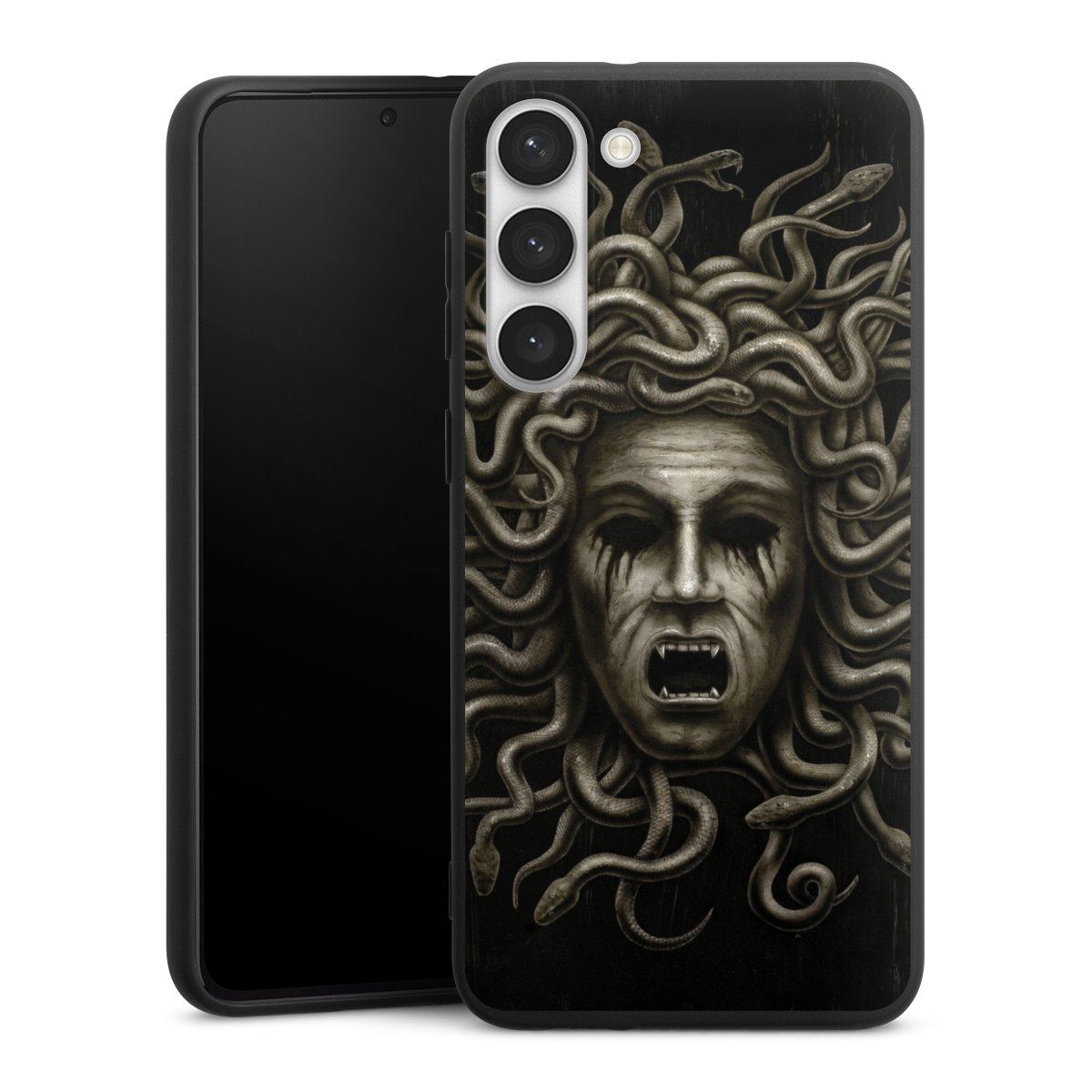 Die flexible Silikonhülle besteht aus robustem TPU (thermoplastisches Polyurethan). Durch das langlebige, bruchsichere Material ist die Hülle biegsam und formbeständig zugleich. Die All Black Edition liegt griffig in der Hand. Die matte Oberfläche lässt Dein Design noch besser zur Geltung kommen und ist weniger anfällig für Fingerabdrücke und Schmutz. Die Handyhülle ist in Mattschwarz erhältlich.