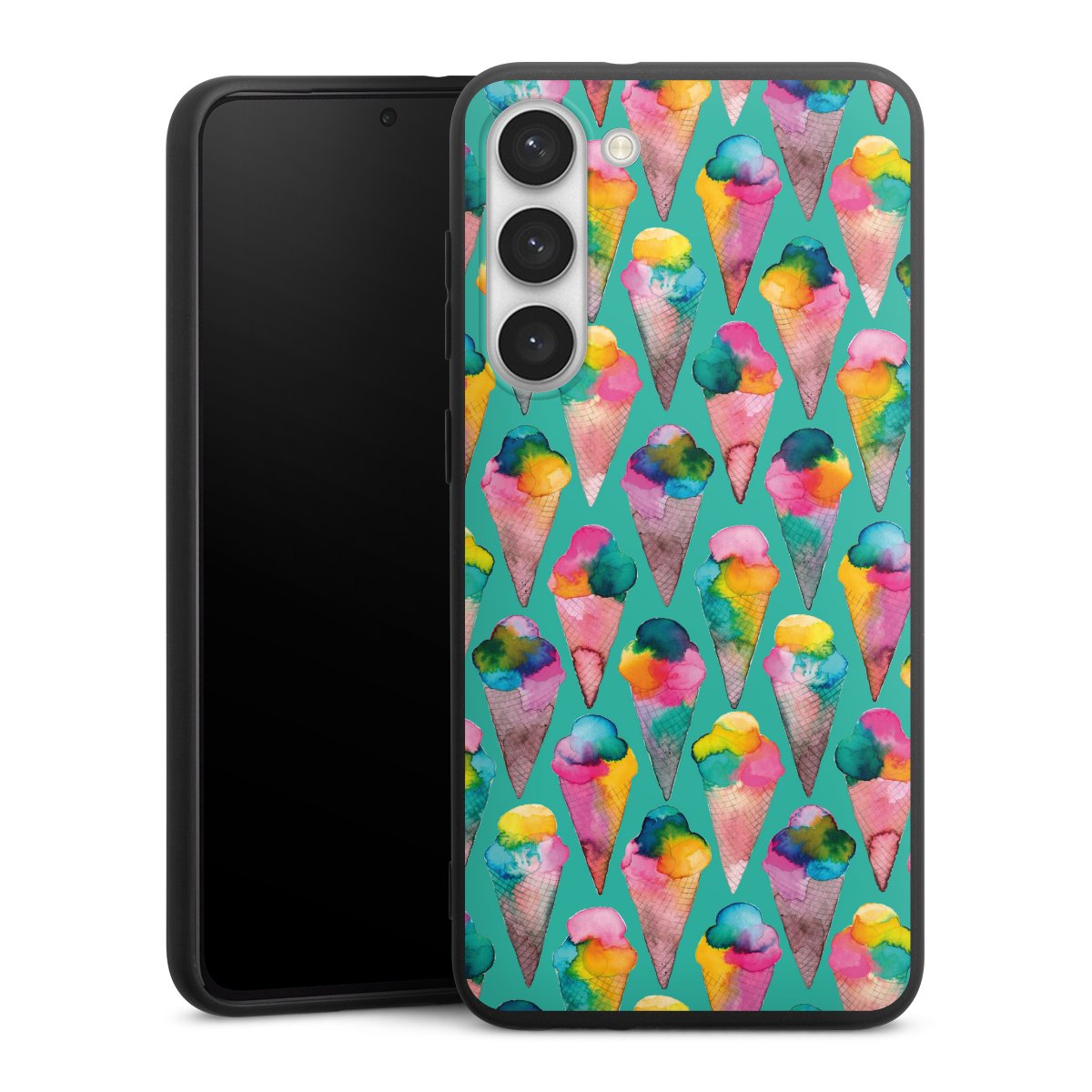 Die flexible Silikonhülle besteht aus robustem TPU (thermoplastisches Polyurethan). Durch das langlebige, bruchsichere Material ist die Hülle biegsam und formbeständig zugleich. Die All Black Edition liegt griffig in der Hand. Die matte Oberfläche lässt Dein Design noch besser zur Geltung kommen und ist weniger anfällig für Fingerabdrücke und Schmutz. Die Handyhülle ist in Mattschwarz erhältlich.