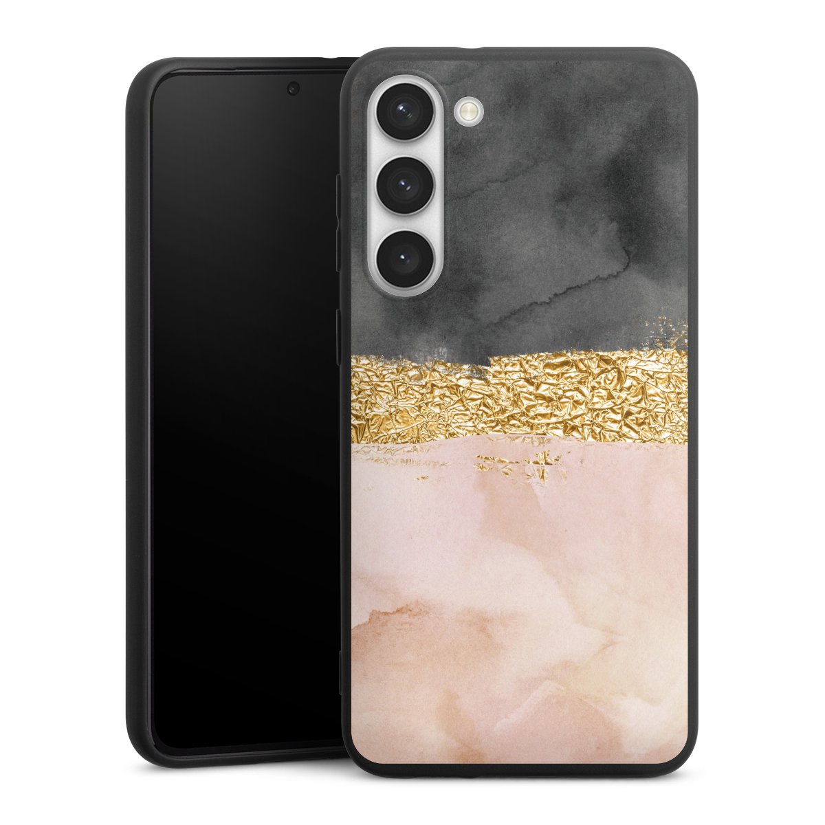 Die flexible Silikonhülle besteht aus robustem TPU (thermoplastisches Polyurethan). Durch das langlebige, bruchsichere Material ist die Hülle biegsam und formbeständig zugleich. Die All Black Edition liegt griffig in der Hand. Die matte Oberfläche lässt Dein Design noch besser zur Geltung kommen und ist weniger anfällig für Fingerabdrücke und Schmutz. Die Handyhülle ist in Mattschwarz erhältlich.
